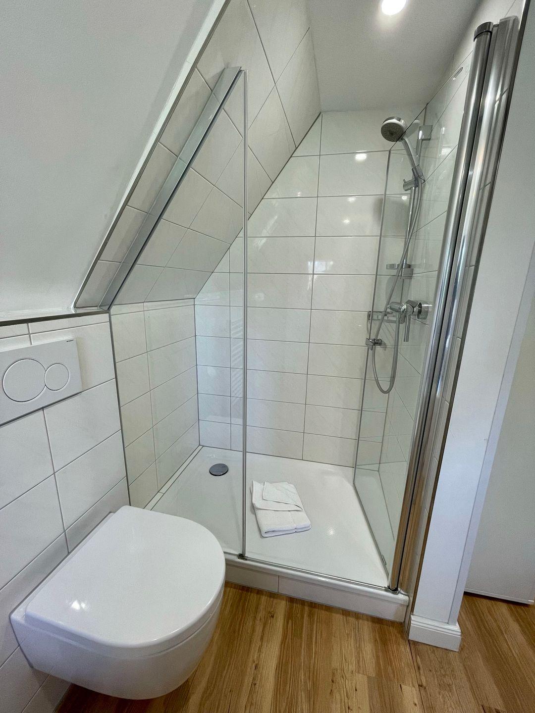 Im Dachgeschoss gibt es 2 Schlafzimmer. Das 1te Schlafzimmer ist mit einem Doppelbett (1,60x 2m), Kleiderschrank und TV- Gerät eingerichtet, es verfügt über ein Duschbad en suite. Das 2te Schlafzimmer ist mit einem Einzelbett eingerichtet, dass man durch herausziehen der unteren Matratze zu 2 Betten umwandeln kann.