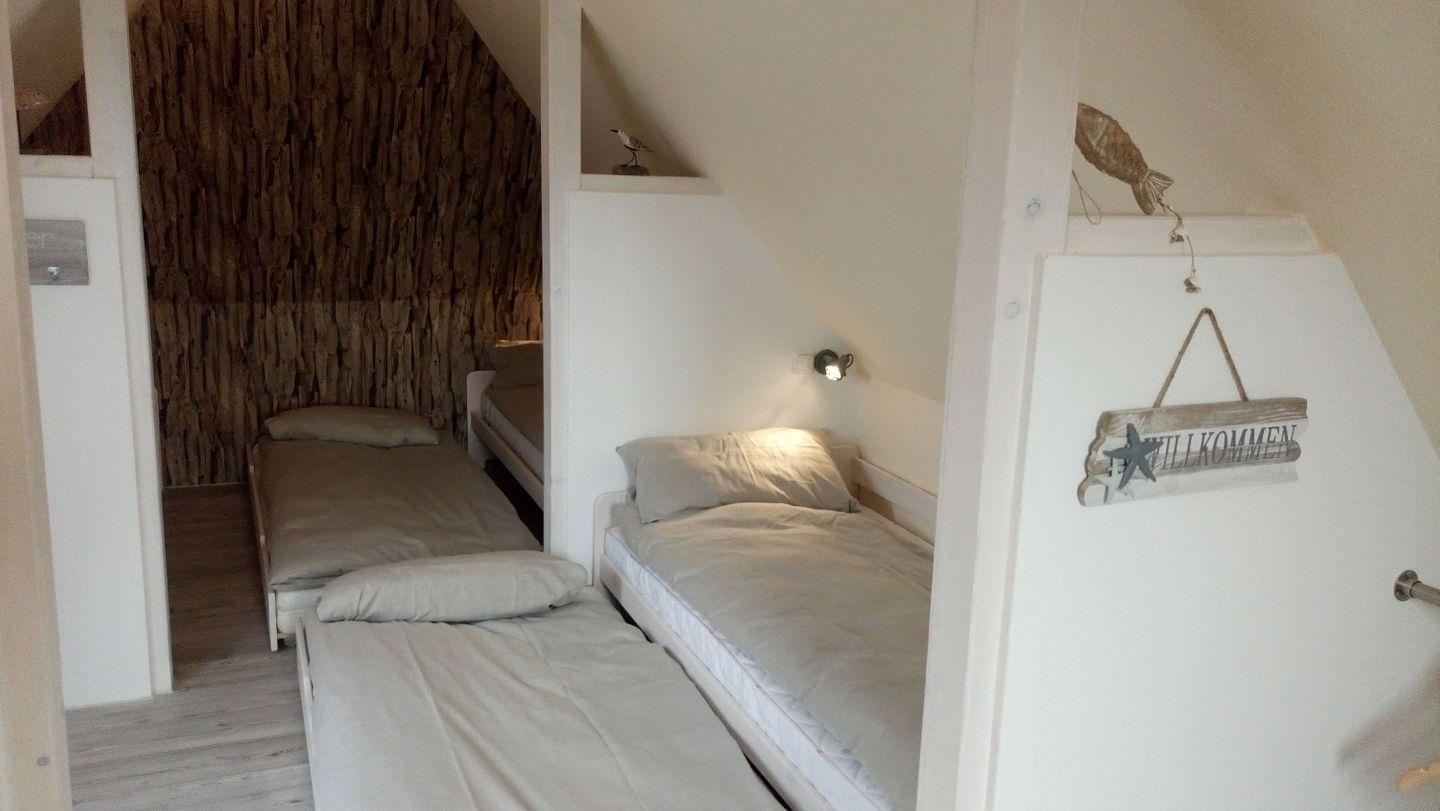 In dieser schönen Ferienwohnung, im ersten Stock, werden Sie sich mit bis zu 4 Personen bestimmt wohlfühlen. Sie bietet jedoch, durch das gemütliche Dachgeschoss mit seinen 6 Schlafkojen, genug Platz für weitere Gäste.