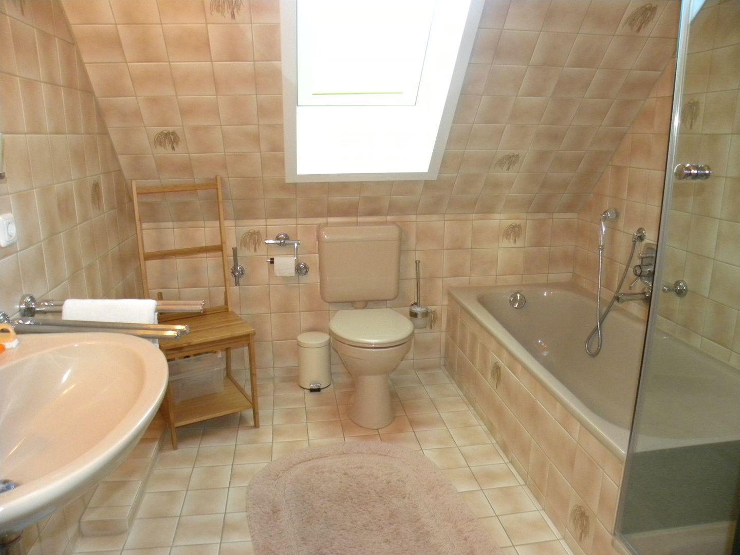 Ein Tageslicht- Bad mit Dusche, Badewanne und WC rundet diese tolle Wohnung ab.