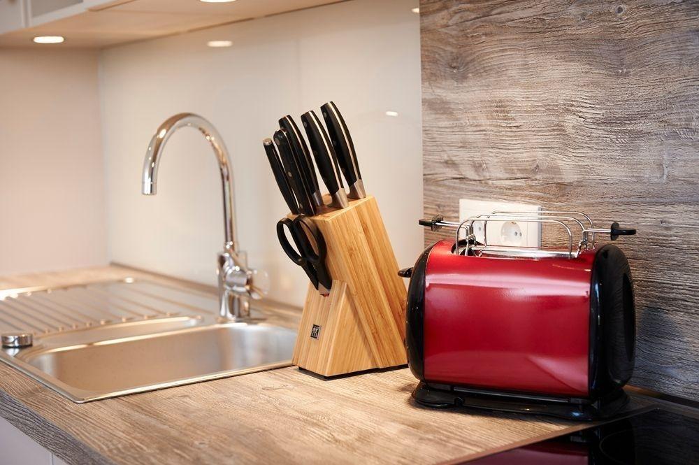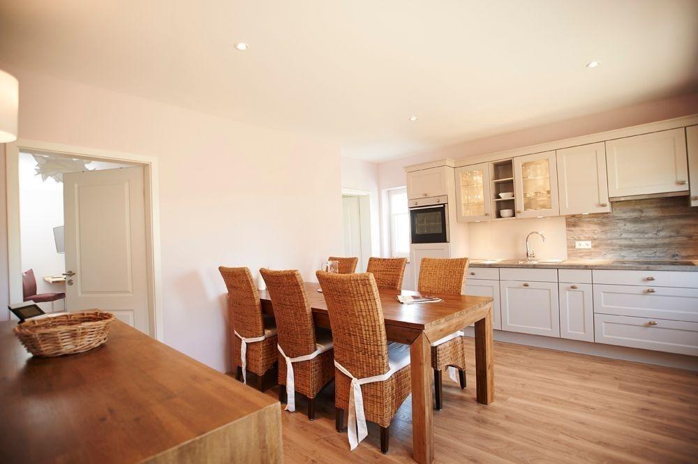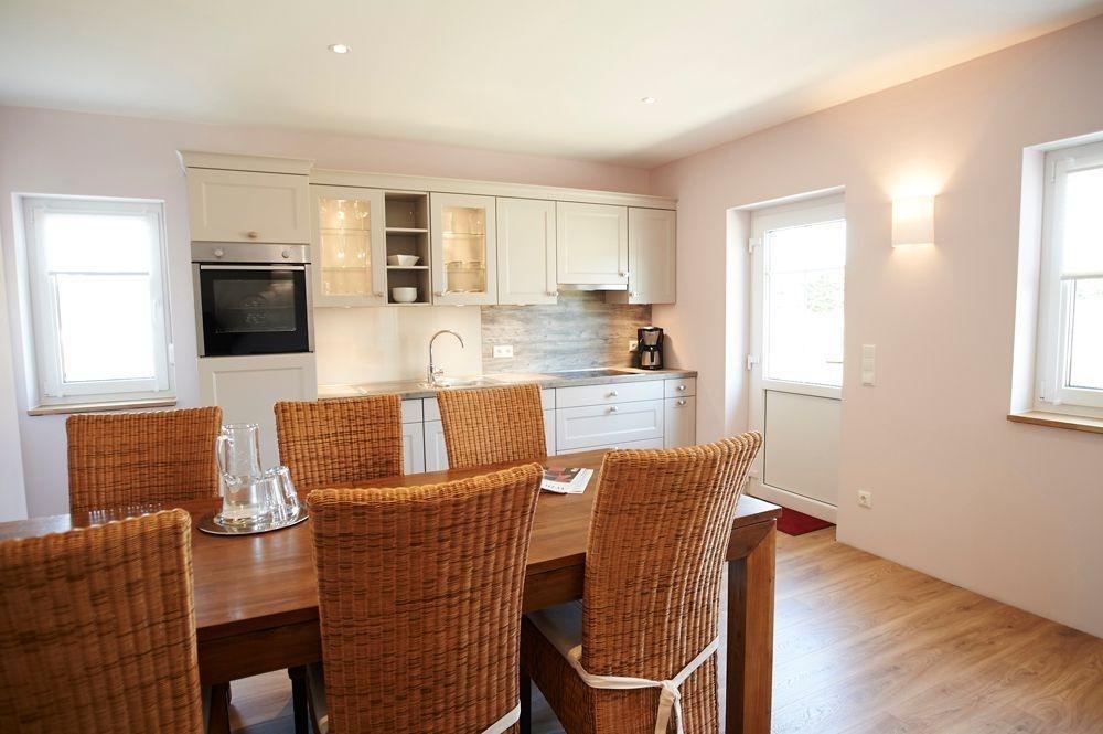 zur Verfügung. Die Markenküche ist sehr gut ausgestattet mit Backofen, Spülmaschine, Kühlschrank und Ceranfeld von Miele und Neff. Kaffeemaschine und Tee, sowie Wasserkocher und Toaster vervollständigen die Küche.