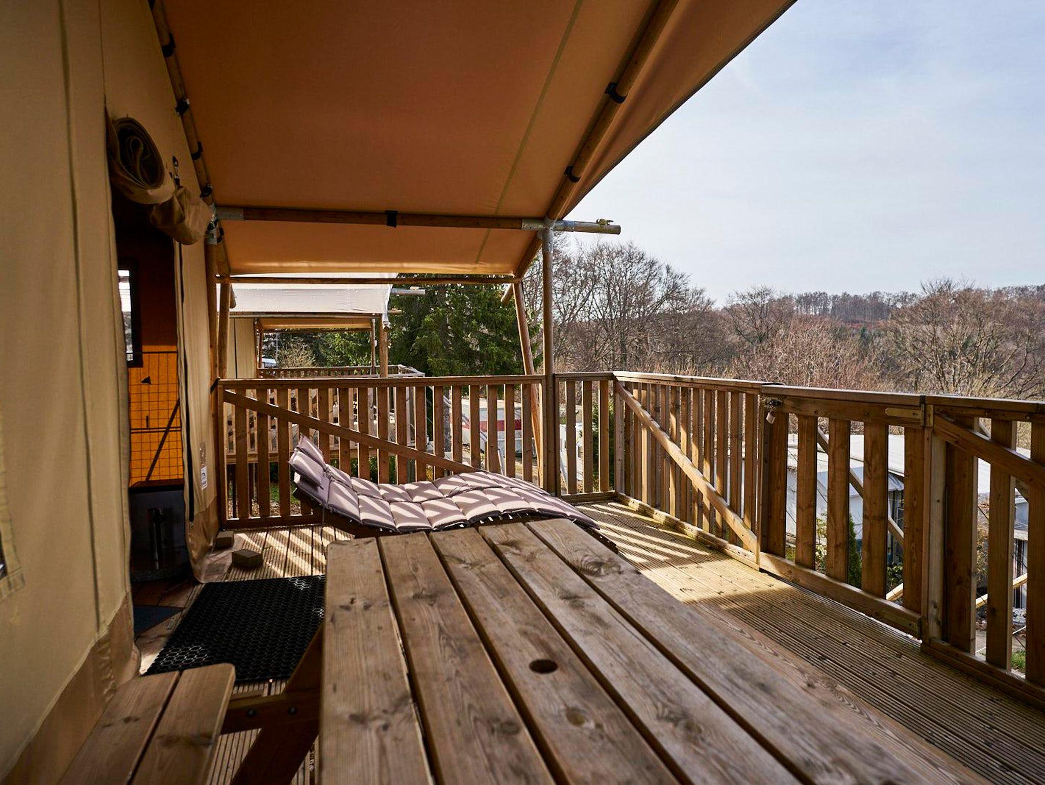 AlbCamping Westerheim, Zeltlodge mit großer Terrasse Richtung Süden