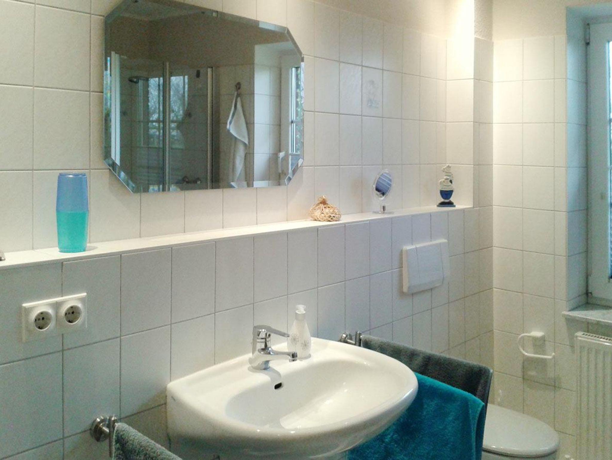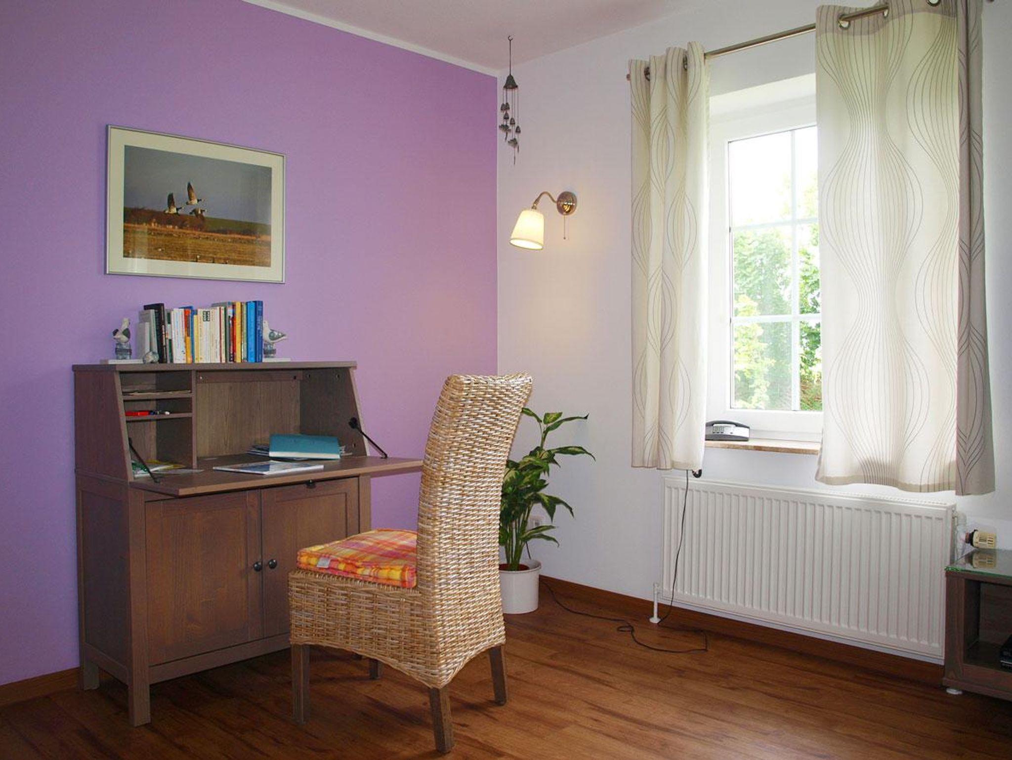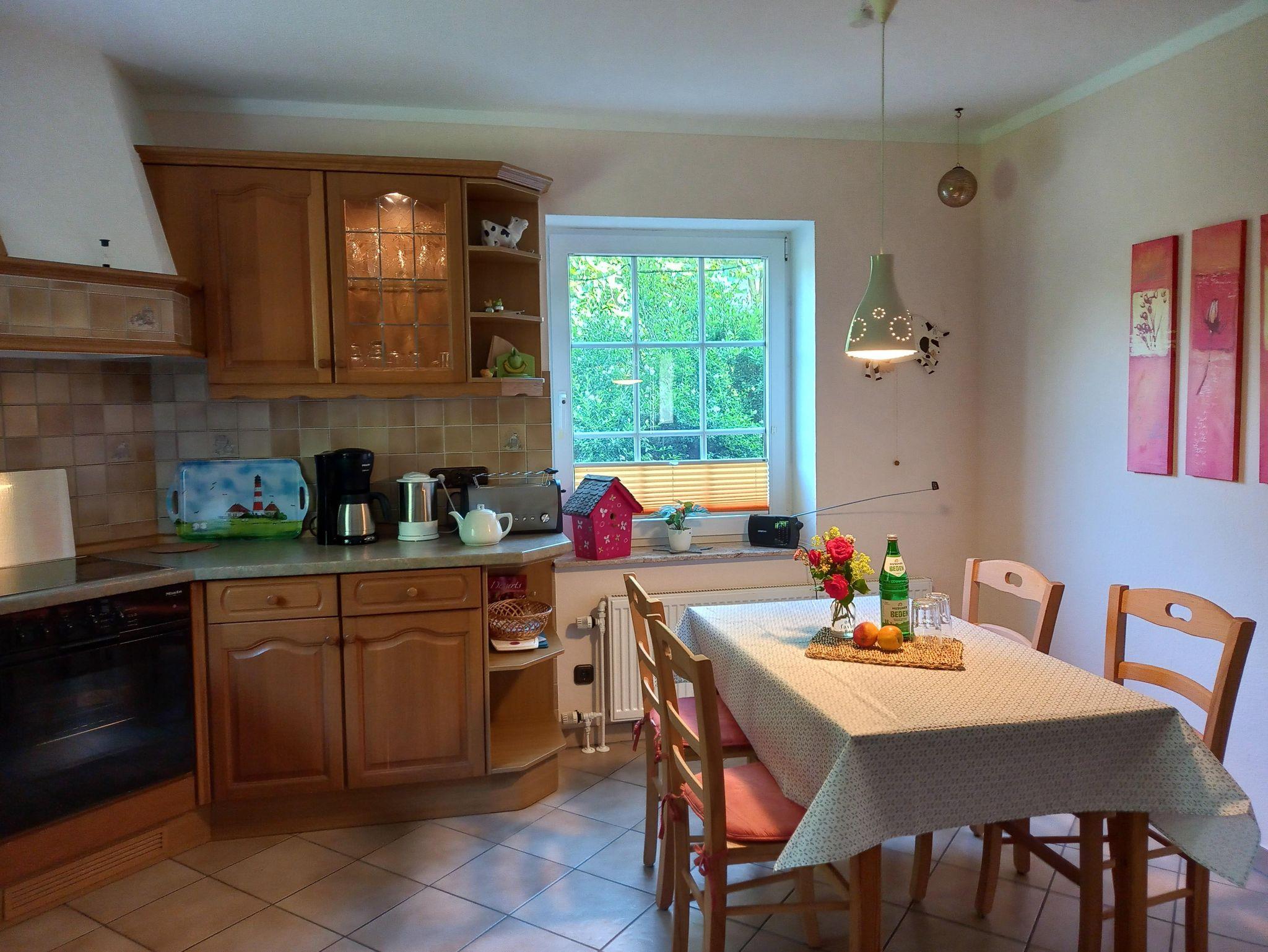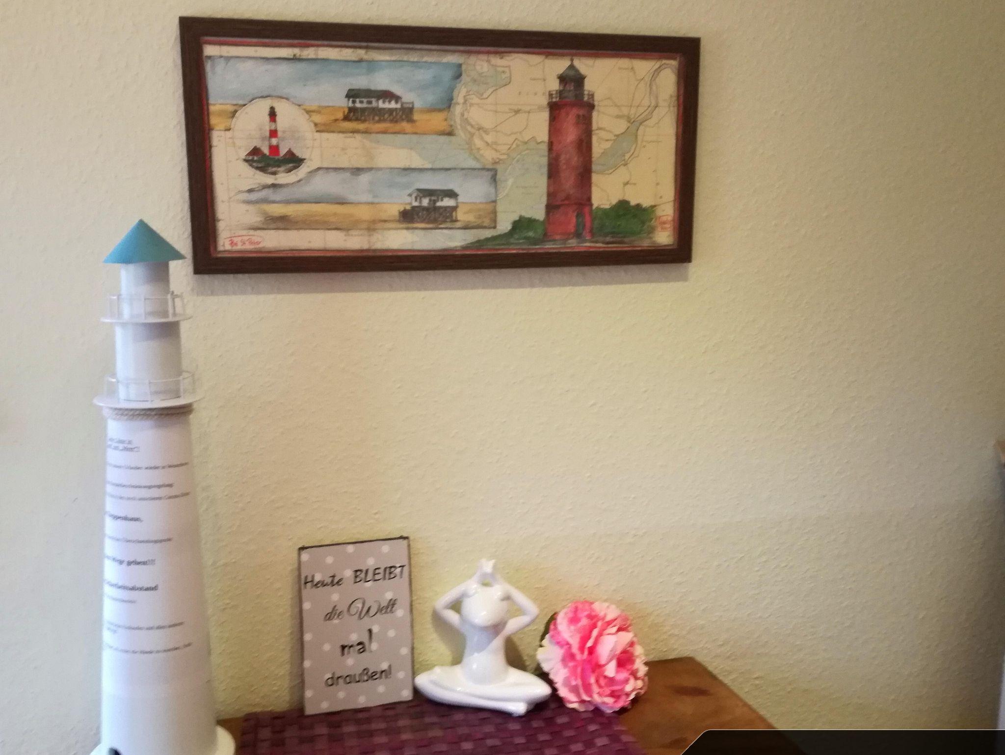 Herzlich Willkommen in unserer Ferienwohnung Land. Im Erdgeschoss gelegen, nahezu barriere frei, ist sie bei Familien mit kleinen Kindern wie auch Senioren sehr beliebt. Auf 80 qm bietet sie Ihnen Gemütlichkeit, maritimen Stil und Komfort. Für eine Familie mit 4 Personen (plus 1 Säugling/Kleinkind) ist sie ausgelegt, in Zwischenzeiten gern an 2 Personen vermietet. Die große, sehr gut ausgestattete Wohnküche mit Geschirrspüler, Umluftbackofen/Ceran-Kochfeld, Mikrowelle, Pürrierstab, WOK-Pfanne, Kühlschrank mit *-Fach... lässt nichts vermissen, ausreichend Pfannen, Töpfe und Geschirr steht zur Verfügung. (Großes Kochgeschirr stellen wir bereit, wenn Sie beide Wohnungen als Einheit -Ferienhaus- belegen.) Ein großer Esstisch bietet Platz für die ganze Familie (Aufstuhlung auf max. 8 Personen) - und eignet sich sehr für lange Spieleabende. Vom gemütlichen Wohnraum aus können Sie auf den Leuchtturm Westerhever blicken... mit Flachbildschirm (SAT-TV) in die Welt. Das großzügige Schlafzimmer mit Doppelbett (Kopfteil verstellbar) und geräumigen Kleiderschrank bietet Hingucker und Praktisches. Im Piraten-Kinderzimmer mit Etagenbett fühlen sich die Kleinen wohl und schlafen nach aufregenden Kapernfahrten an Strand und Land wohlig ein. Abdunkelung vorhanden. Im Tageslichtbad mit Badewanne und Dusche sorgt der Rosenbusch am Fenster indirekt für Blickschutz und Blickfang. Ausreichend Abstellfläche für Ihre Kosmetik ist vorhanden. Nicht weniger geräumig ist der Flur mit Kommode, Garderobe, Regalen und großem Spiegel - fast ein vollwertiger Raum.