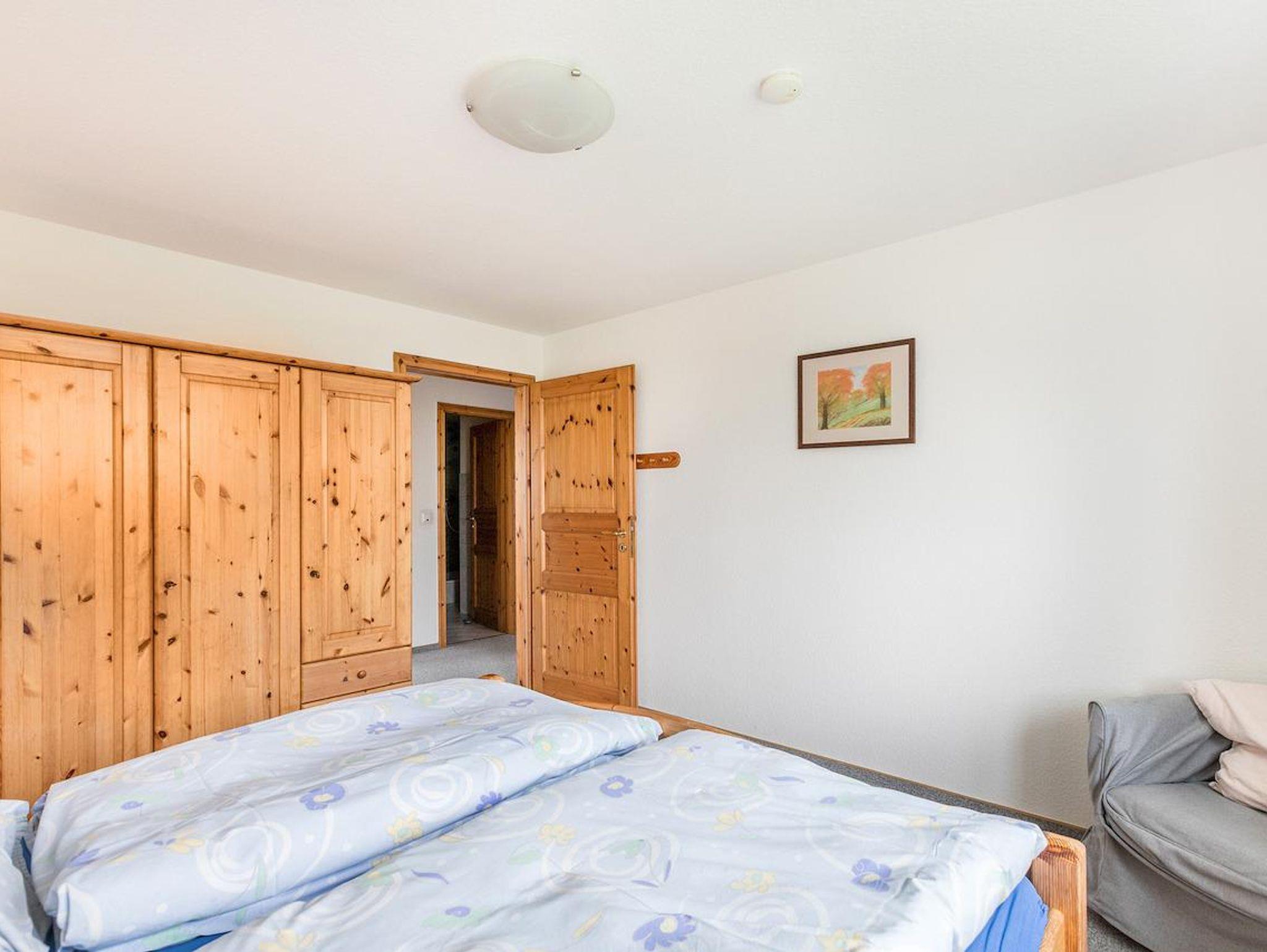 Im Obergeschoss befindet sich zwei Schlafzimmer mit je einem Doppelbett und ein Kinderzimmer mit einem Etagenbett. Auch befindet sich im Obergeschoss das grosszügige Badezimmer mit Dusche und WC. Diese Wohnung hat im Wohnbereich einen Kaminofen.