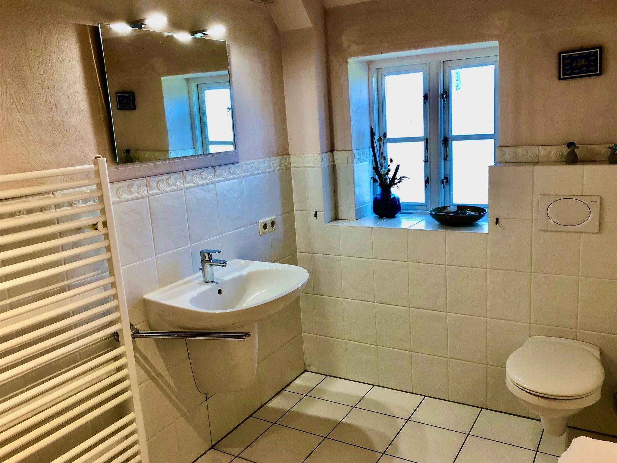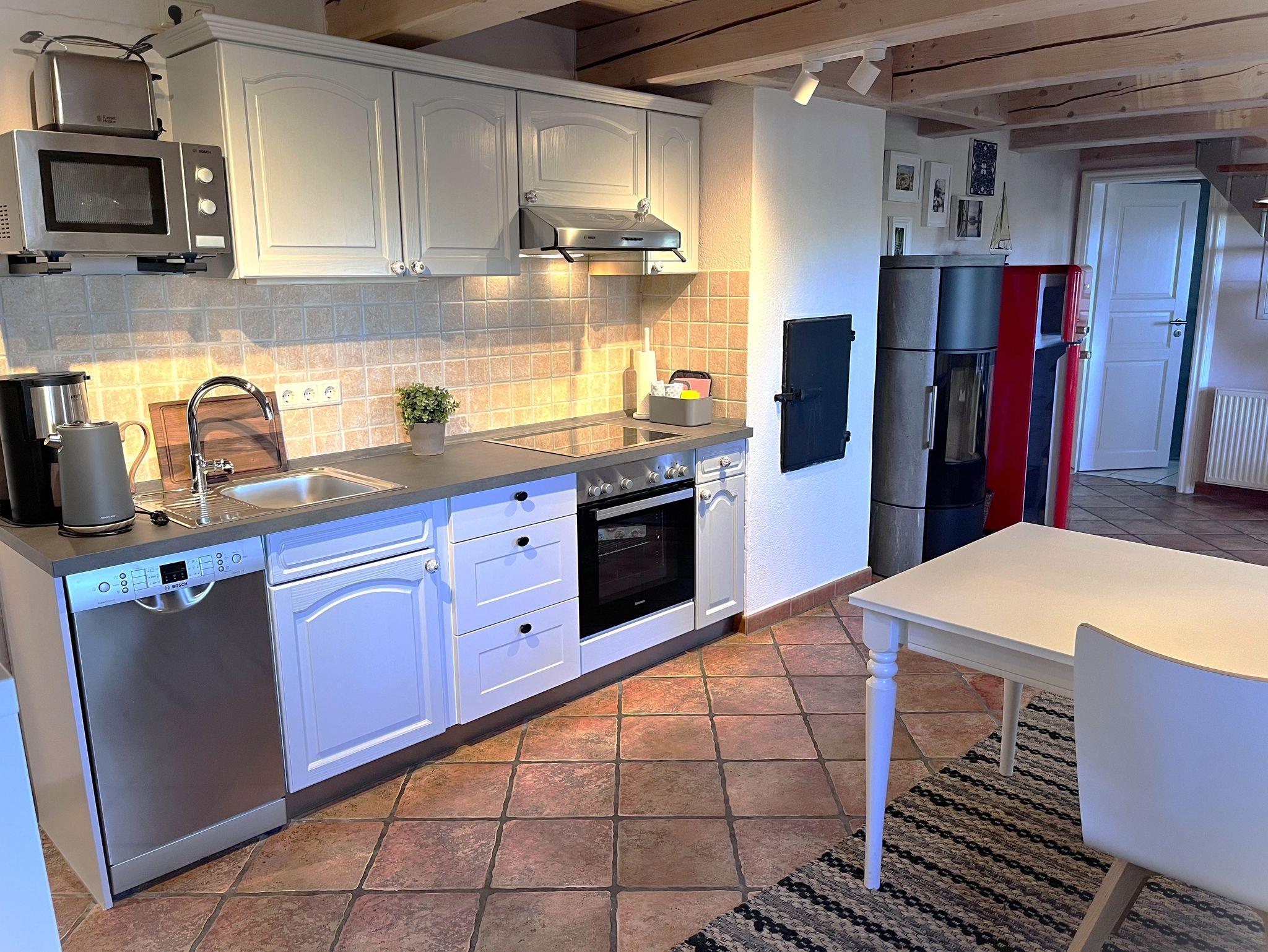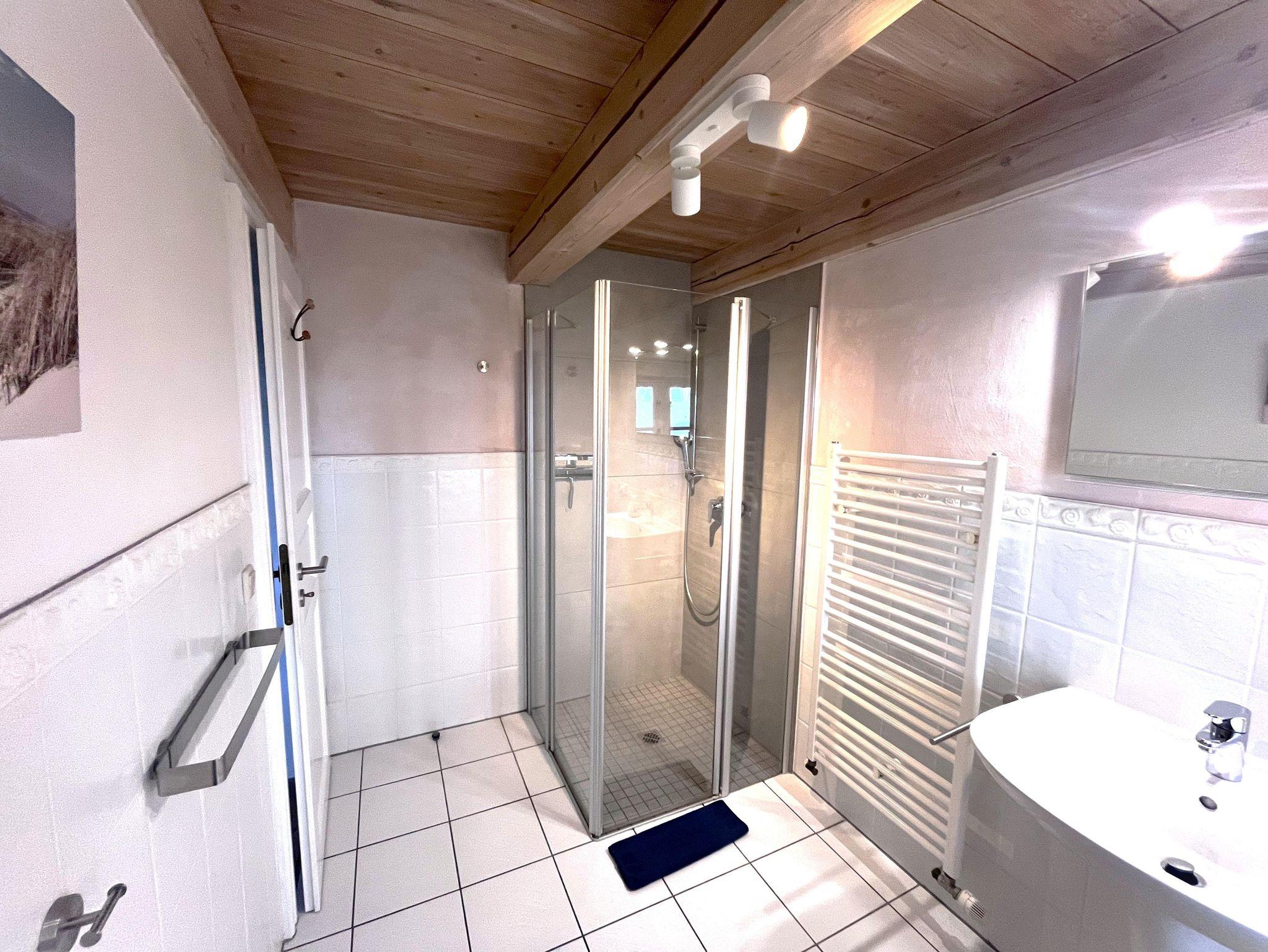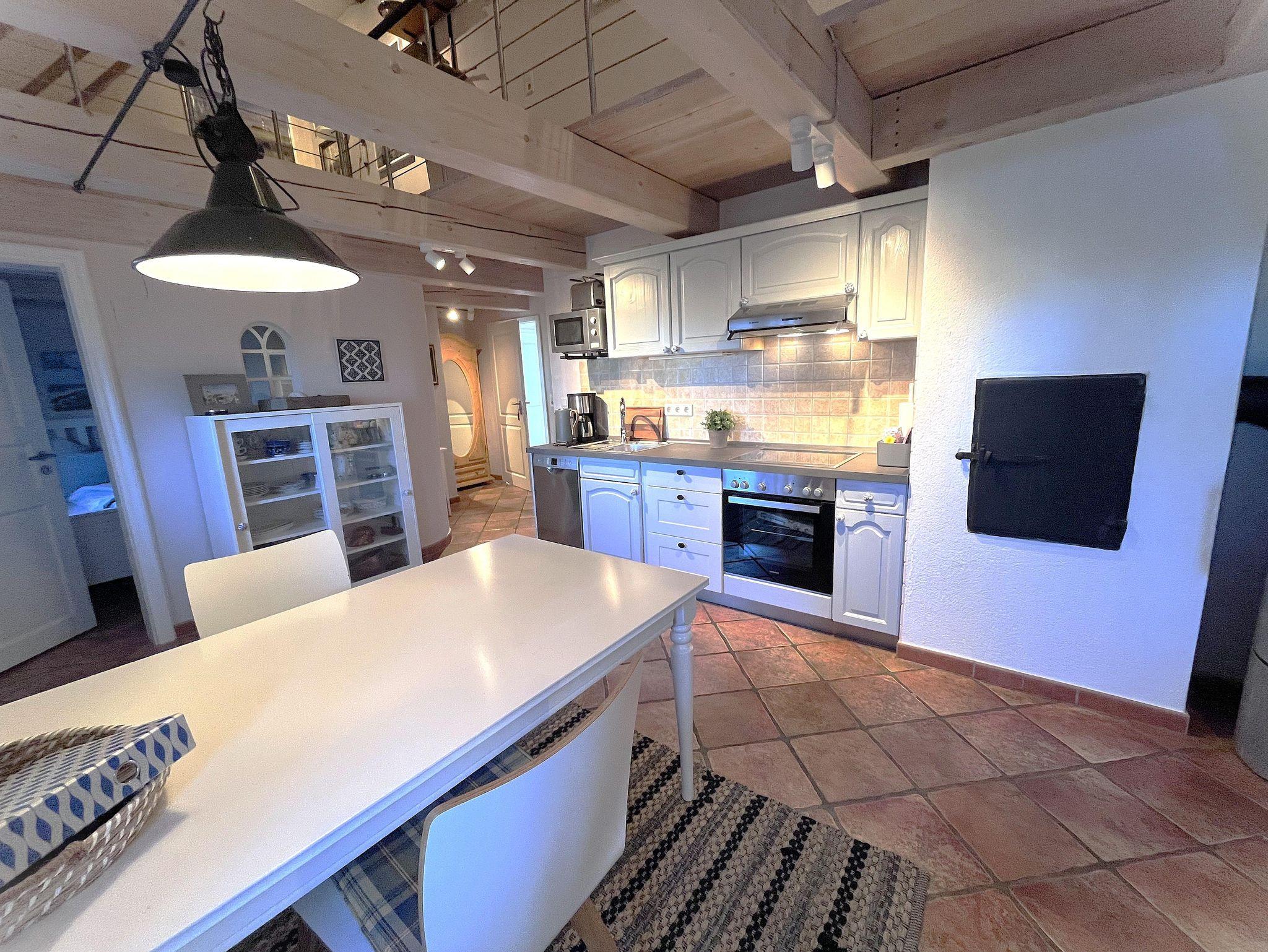 Der 25 m² große Wohn-/Essbereich im Erdgeschoss ist großzügig, modern und behaglich mit einer komplett ausgestatteten Wohnküche, einem schönen Essplatz für zwei Personen und dem lichtdurchfluteten Wohnzimmer konzipiert.. Genießen Sie vom Esstisch durch die Fenster oder die typische Klöntür den Blick in den Garten, über Felder und Wiesen bis zum Deich. Das 10qm grosse Bad ist als Wellnessbereich ausgelegt, bietet viel Platz und eine bodengleiche, große Dusche. Das Schlafzimmer mit grossem Bett und Kleiderschrank runden das Erdgeschoss ab. Im Obergeschoss erwartet Sie in unserer offenen Galerie am einen Ende ein separater Wohn-/TV-Bereich mit gemütlichen, hochwertigen Sesseln im skandinvisch-friesischen Stil. Zusätzlich finden Sie im Ruhe-/ Bibliotheksbereich eine schöne Recamiere zum erholen und auspannen...