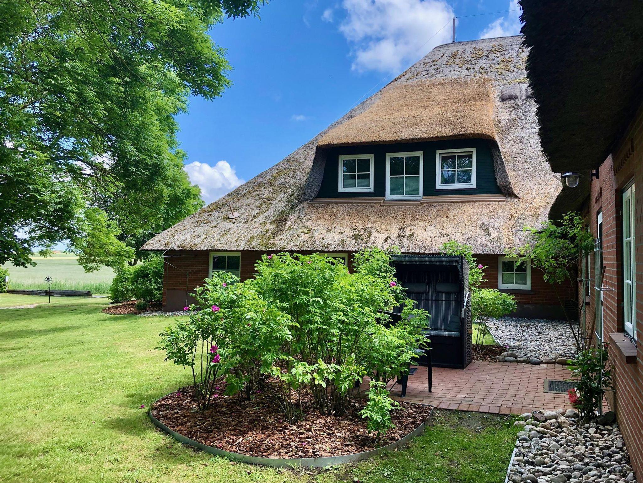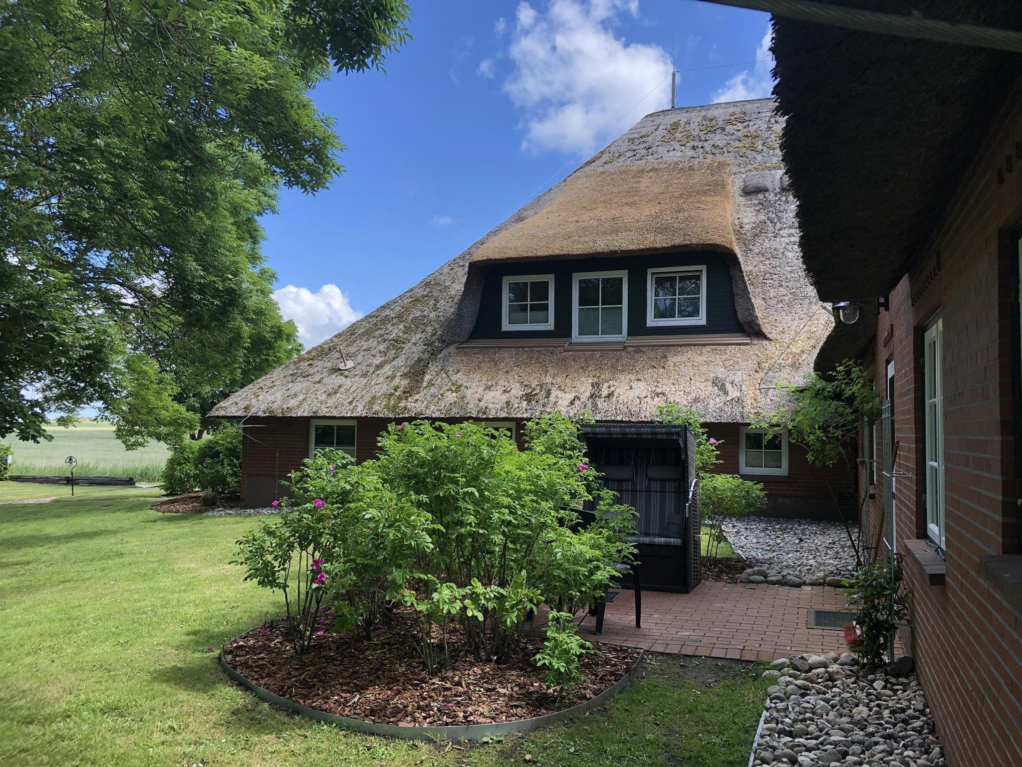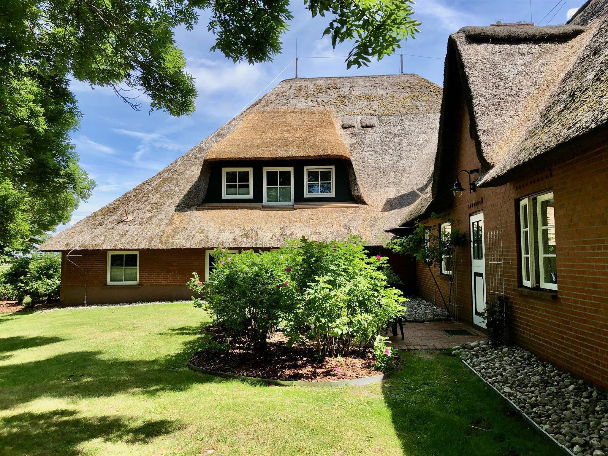 Unser Haubarg Alte Strandvogtei unter Reet hat insgesamt vier skandinavisch-friesische Ferienwohnungen, ist voll renoviert, modern ausgestattet und bietet im Außenbereich Schaukeln, Garten mit Gartenmöbeln, Strandkörben und Grill. Am Osterdeich, der östlichen Begrenzung der ehemaligen Insel Utholm, einer der drei großen Inseln, aus denen durch Eindeichung und Landgewinnung die heutige Halbinsel Eiderstedt wurde, steht seit dem Jahre 1804 die alte Strandvogtei - nur unweit vom Deich und der Nordsee entfernt.