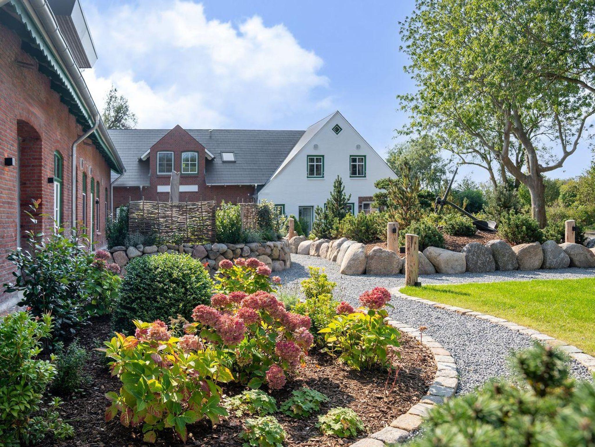 Jedes Domizil wurde von dem renommierten Designer Olaf Kitzig hochwertig ausgestattet. Von hochwertigen Tischlereinbauten bis hin zu exklusiven Ausstattungsdetails in Badezimmern und Küchen erwartet Sie hier ein Höchstmaß an Wohnkomfort. Genießen Ihren Auszeit in der Alten Schule in Westerhever. Das Grundstück ist Parkähnlich und mit heimischen Pflanzen angelegt. Zudem wird das Grundstück durch zwei Wasserläufe am Ende des Grundstücks begrenzt.