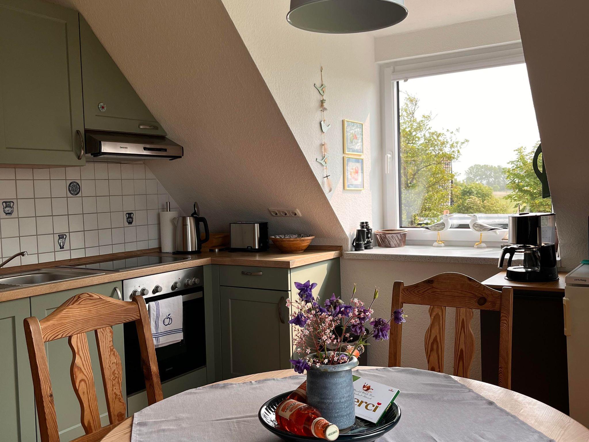 Wir bieten eine Wohnung für maximal 4 Personen. Die Wohnung beinhaltet auf einer Wohnfläche von 60 qm ein Wohnzimmer mit integrierter vollausgestatteter Küche, zwei Schlafzimmer, ein Duschbad und eine Lesegalerie.