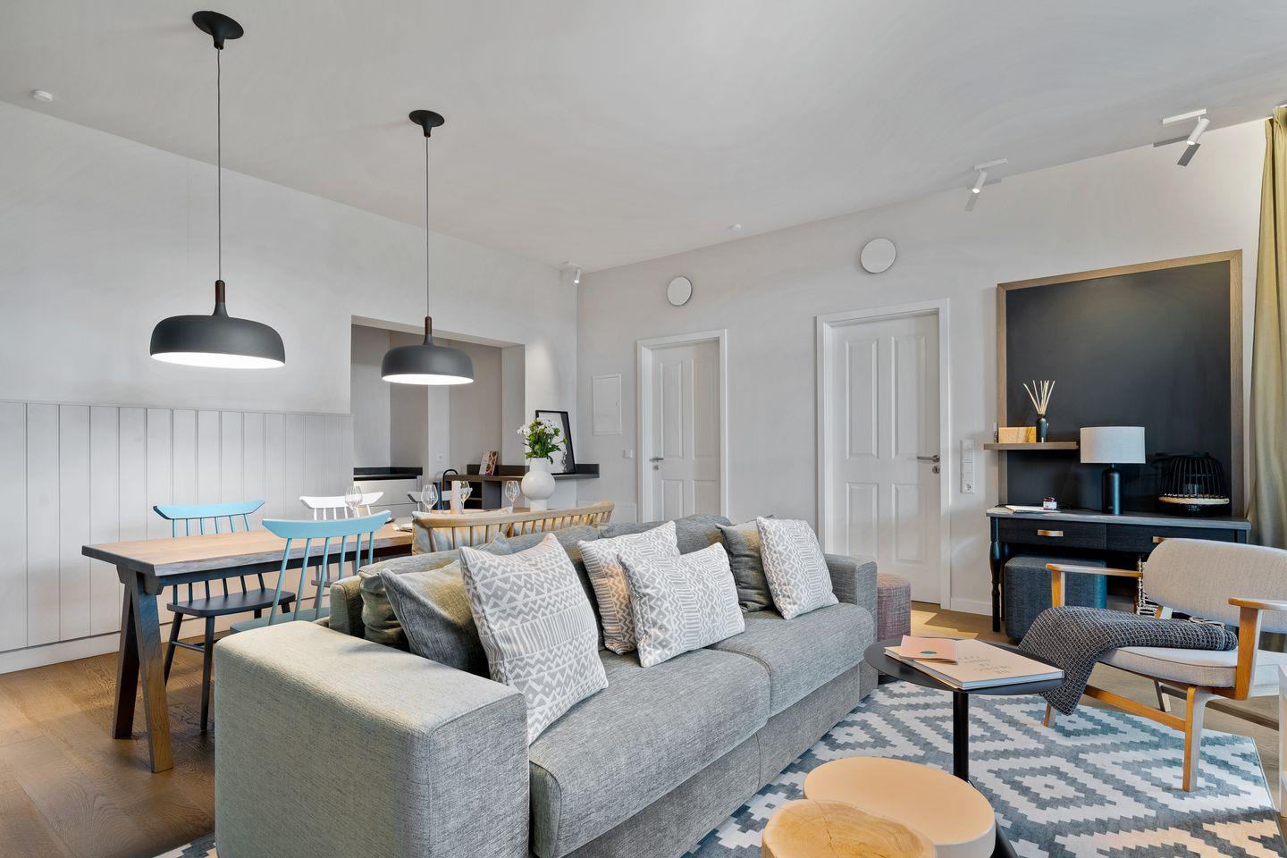 Die offene und exklusive Küche ist komplett ausgestattet und ideal für alle, die gerne selbst kochen. Hier finden Sie alle notwendigen Küchenutensilien sowie Hochwertige E-Geräte wie einen Induktionsherd, einen Backofen, eine Spülmaschine, eine Kaffeemaschine um Ihren Morgen mit einer Tasse frisch gebrühten Kaffee zu beginnen. Der eingerichtet Wohnbereich ist hell und exklusiv gestaltet und verbindet sich harmonisch mit der Küche. Gemütliche Abende können Sie beim Fernsehen verbringen; die Ferienwohnung ist mit zwei TV-Geräten ausgestattet, sodass Sie Ihre Lieblingssendungen in beiden Bereichen genießen können.