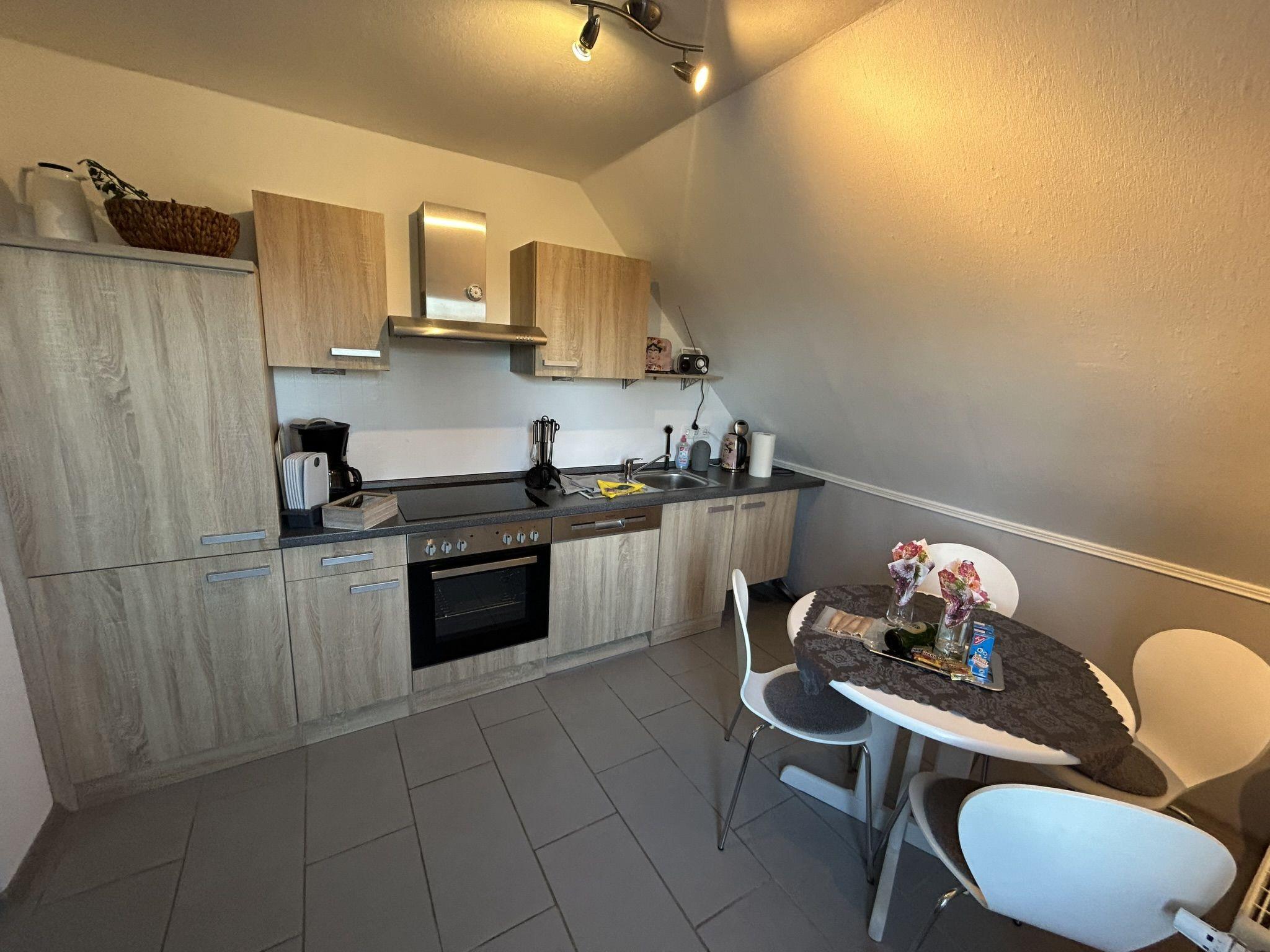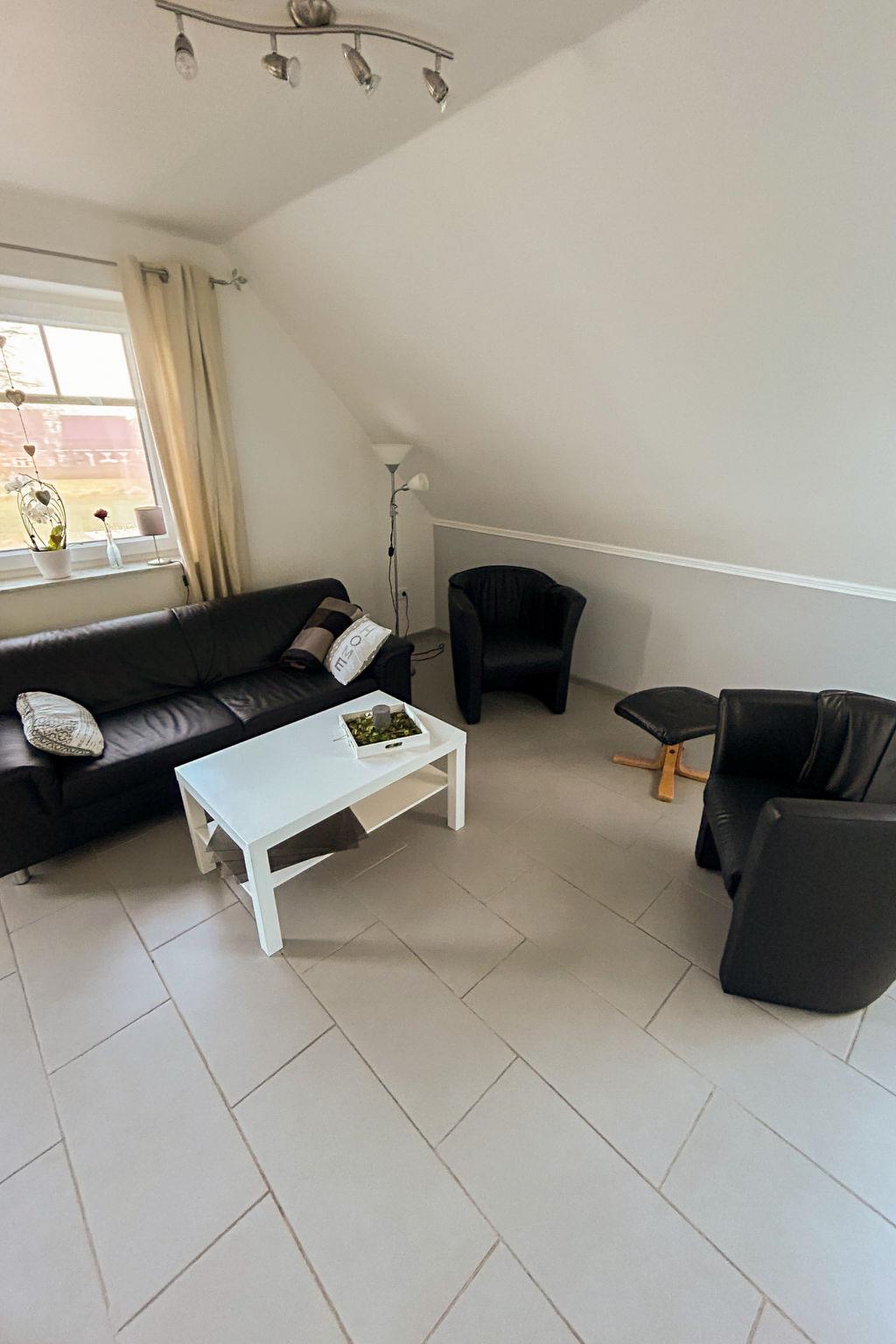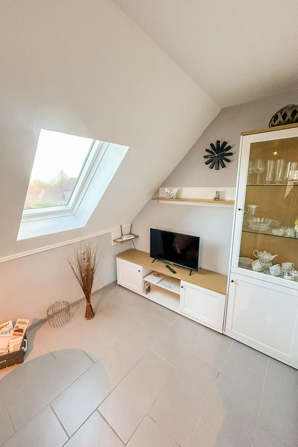 "Dori", 3-room apartment 50 m2, on the top floor. With sloping ceilings, cosy furnishings: living/dining room with satellite TV (flat screen). Exit to the balcony. 1 room with 1 double bed (2 x 90 cm, length 200 cm). 1 room with 2 beds (90 cm, length 200 cm), satellite TV (flat screen). Open kitchen (oven, dishwasher, 4 ceramic glass hob hotplates, microwave, electric coffee machine). Bath/shower/WC. Garden. Terrace furniture, balcony furniture, barbecue, sitting area. Facilities: baby cot for up to 2 year olds. Internet (WiFi, free). Please note: non-smokers only. Maximum 2 pets/ dogs allowed. Private entrance, smoke alarm.