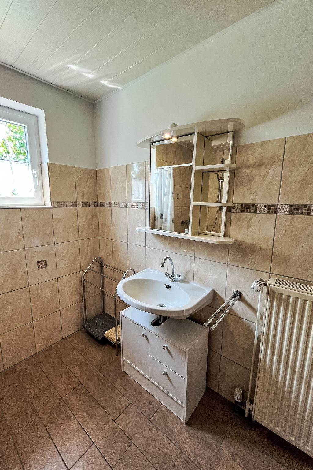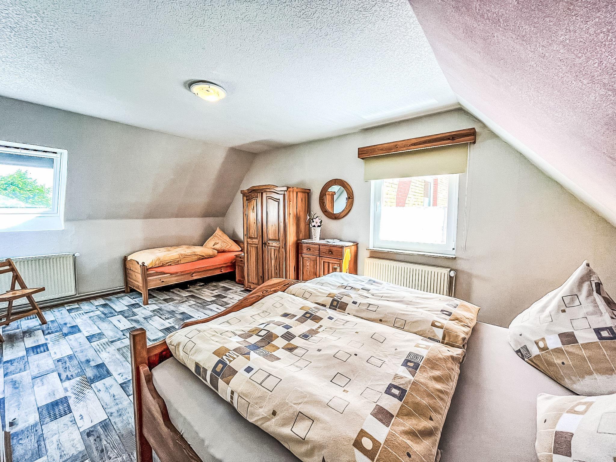 3-family house "Osterkamp". In the district of Eversmeer, on the outskirts, 4.7 km from the centre of Westerholt, in a quiet position, 17 km from the sea, 500 m from the lake, 18 km from the beach. In the house: central heating system. Parking at the house. Shop 5.5 km, grocery 5.5 km, supermarket 5.5 km, café 300 m, bus stop 750 m, railway station "Norden" 18 km, ferry "Bensersiel" 24 km, sandy beach 18 km, outdoor swimming pool 13 km, indoor swimming pool 13 km. Golf course (18 hole) 16 km. Well-known lakes can easily be reached: Ewiges Meer 500 m. Please note: car recommended.