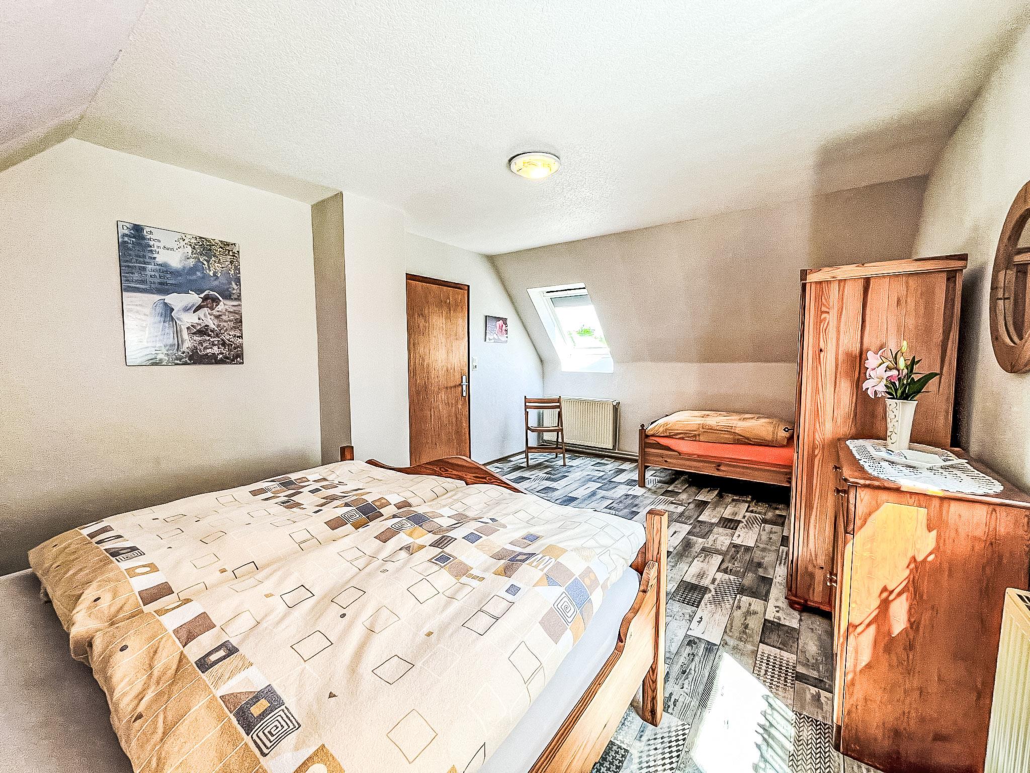 3-room apartment 70 m2 on 2 levels, on the ground floor. Cosy furnishings: living room with satellite TV (flat screen). Exit to the terrace. 1 room with 2 beds (90 cm, length 200 cm). Large kitchen (oven, dishwasher, 4 ceramic glass hob hotplates, toaster, kettle, microwave, electric coffee machine) with dining nook. Shower/WC. Upper floor: 1 room with 1 bed (90 cm, length 200 cm), 1 double bed (2 x 90 cm, length 200 cm). Sep. WC. Terrace furniture. Facilities: children's high chair. Please note: non-smokers only. Smoke alarm.