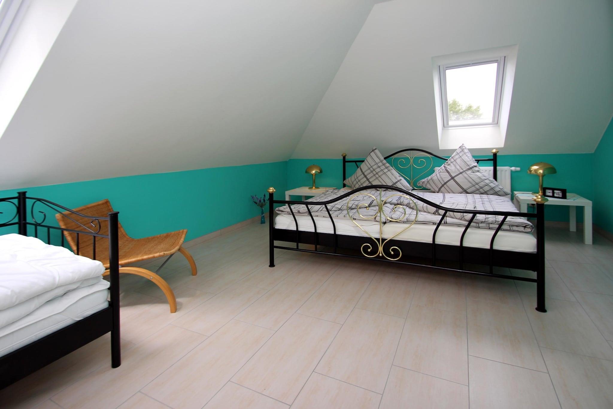 Dette feriehus byder på masser af plads til store familier med sine to lejligheder. Hver lejlighed er moderne og udstyret af høj kvalitet og har sin egen terrasse med udsigt over søen. Vesterhavet kommer og går, men den lille sø, som dette hus ligger på, er der altid. Så nyd freden og den smukke udsigt over vandet. Søen er også ideel til fiskeri (fisketegn er påkrævet). Lejligheden på øverste etage kan bookes her. Du kan også finde stuelejligheden på DNS01310-EYC og hele ferieboligen på DNS01310-FYE. Højdepunkter: forbrugsbaserede energiomkostninger, slutrengøring, udsigt over søen Aktiviteter i nærheden: Den lille by Westerholt i Østfrisland er omgivet af vidt landskab, frodige enge og marker tæt på Vesterhavet og er et ideelt sted at udforske området og komme sig fra en stressende hverdag. For eksempel er Det Evige Hav, kun fem kilometer væk, en af de største hævede hedesøer i Tyskland. Her kan du observere mange dyr, beundre det unikke i landskabet langs en strandpromenadesti eller nyde friskbagt kage i den hyggelige café. Du er også tæt på kystbyerne Dornumersiel, Neuharlingersiel og Bensersiel. Dornumersiel venter på dig med en strand og en havvandsswimmingpool, i Neuharlingersiel kan du besøge den historiske fiskerihavn med en aktiv rejebådsflåde og hente et par friske krabber.