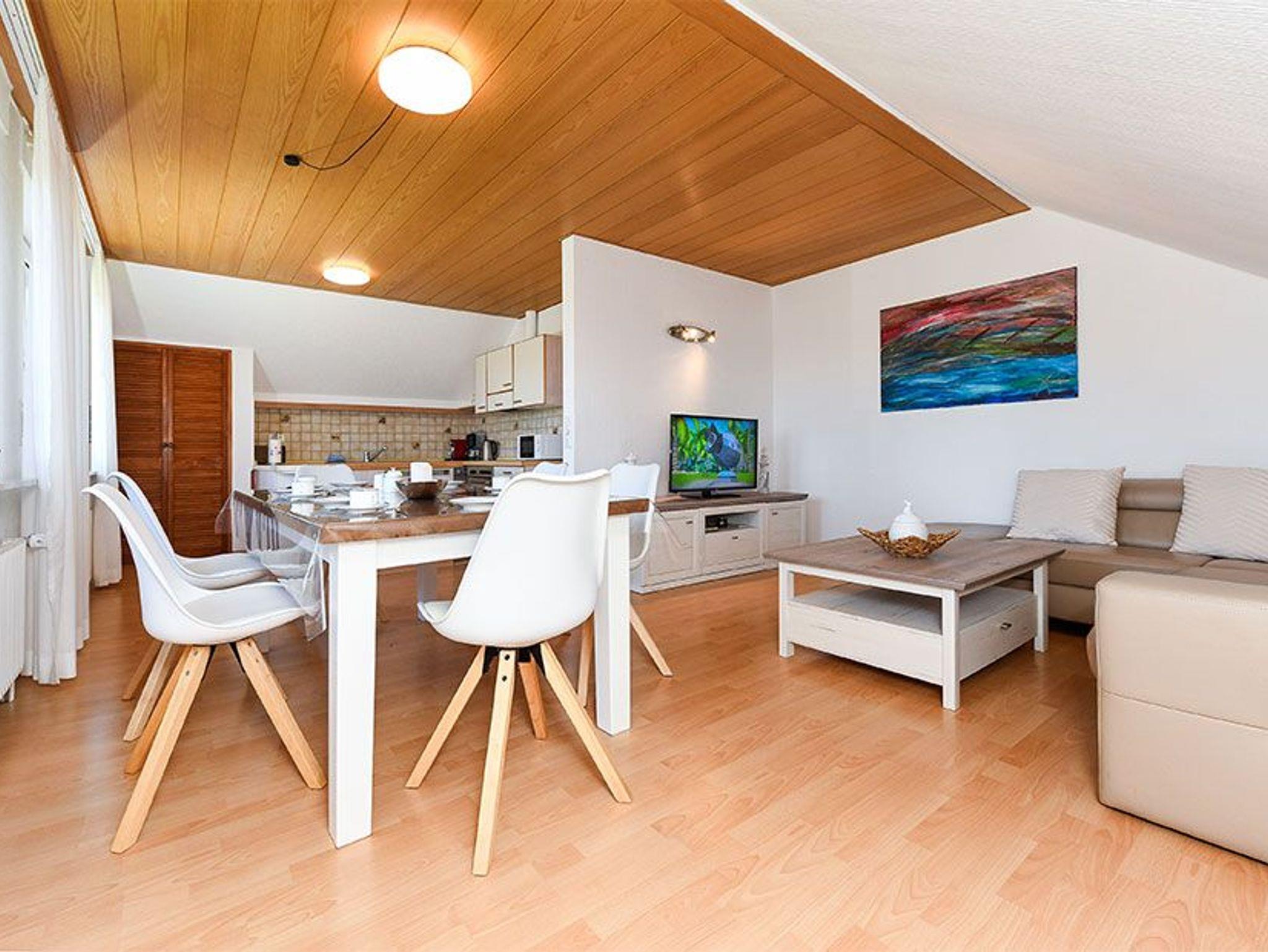 Sie wohnen in einer sehr gut ausgestatteten und komfortabel und freundlich gestalteten und eingerichteten ungefähr 90 Quadratmeter großen Ferienwohnung mit drei Schlafzimmern, einem überdachten Balkon (Loggia) und einer möblierten Sonnenterrasse im Garten. Das Haus mit der Ferienwohnung „Rotbuche“ steht in einer ruhigen Seitenstraße. Hier werden Sie zu zweit oder mit Ihrer Familie mit bis zu sechs Personen einen erholsamen und schönen Urlaub verbringen!
