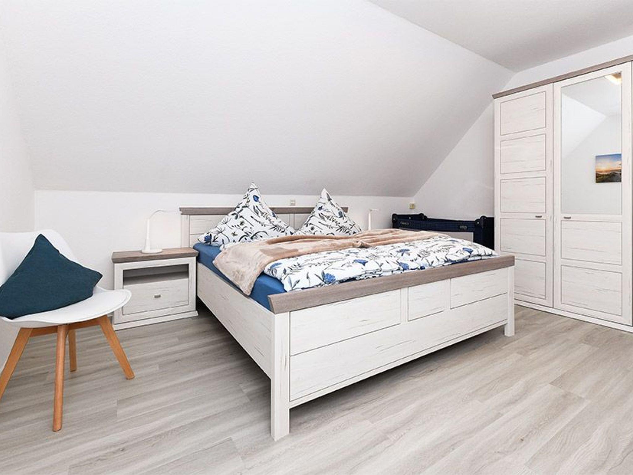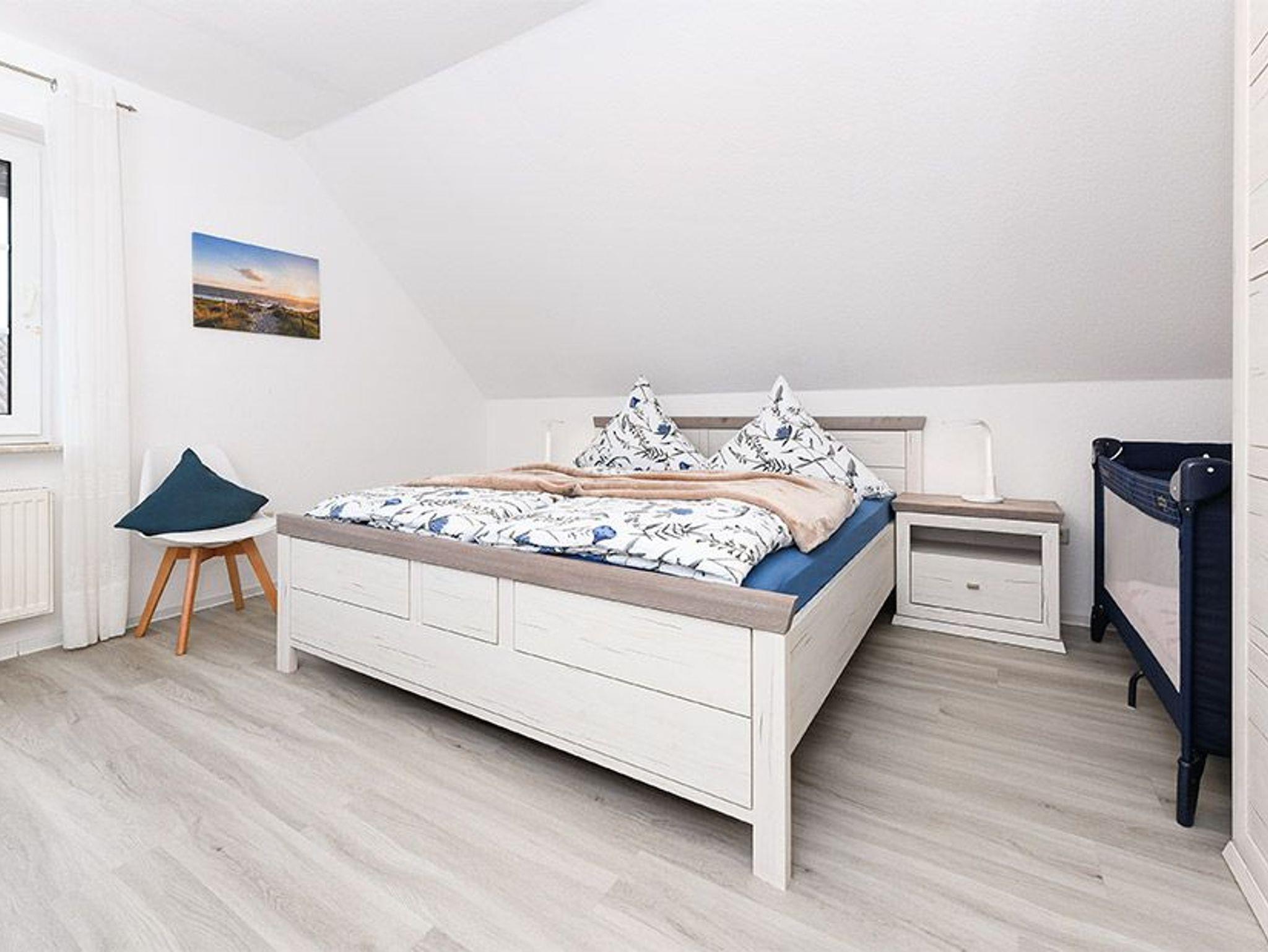 Größe ca. 60 Quadratmeter, Wohn- und Schlafraum mit räumlich abgeteiltem Küchenbereich, zweites separates Schlafzimmer/Kinderzimmer, Badezimmer mit Doppel-Waschtisch, Dusche, Bidet und WC, Obergeschoss, Terrasse im Garten, Wintergarten am Garten, optimal für 2 bis 5 Personen und zusätzlich ein Kleinkind.