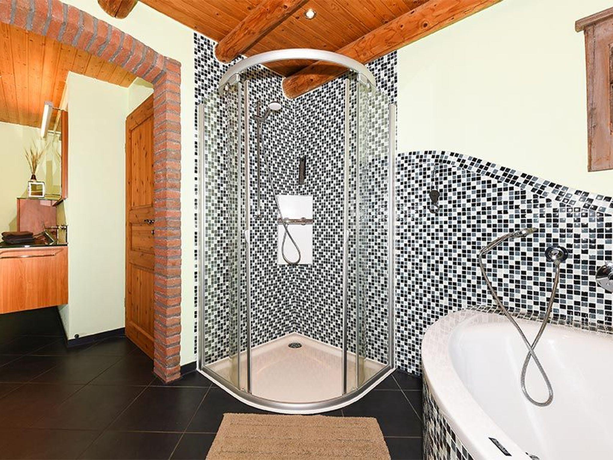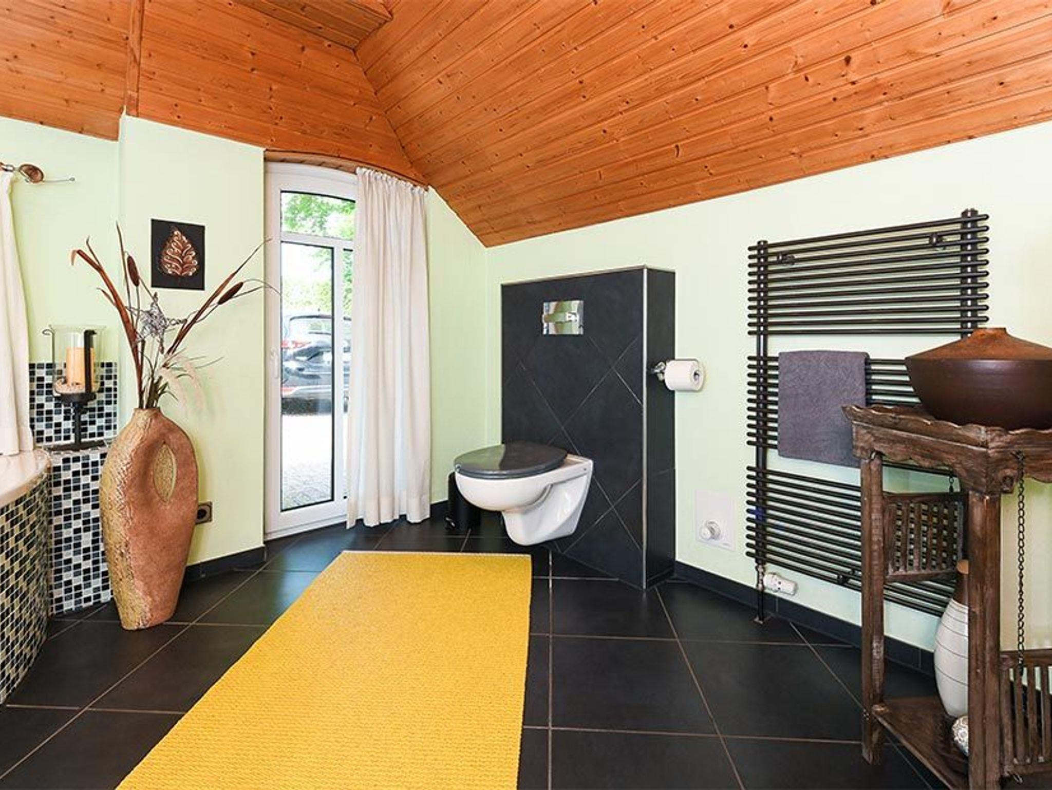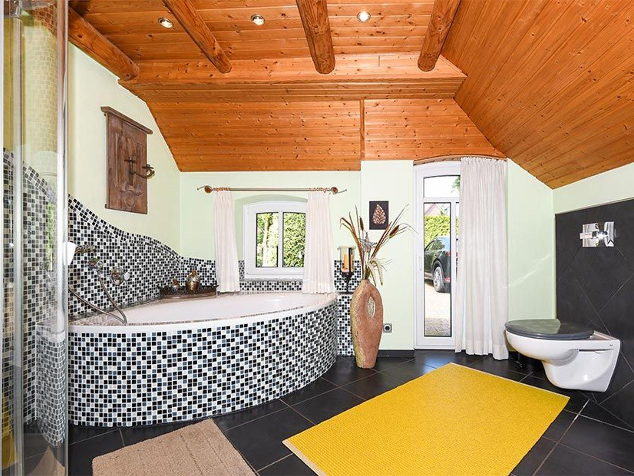 Badezimmer mit Badewanne, Dusche, Waschtisch und WC