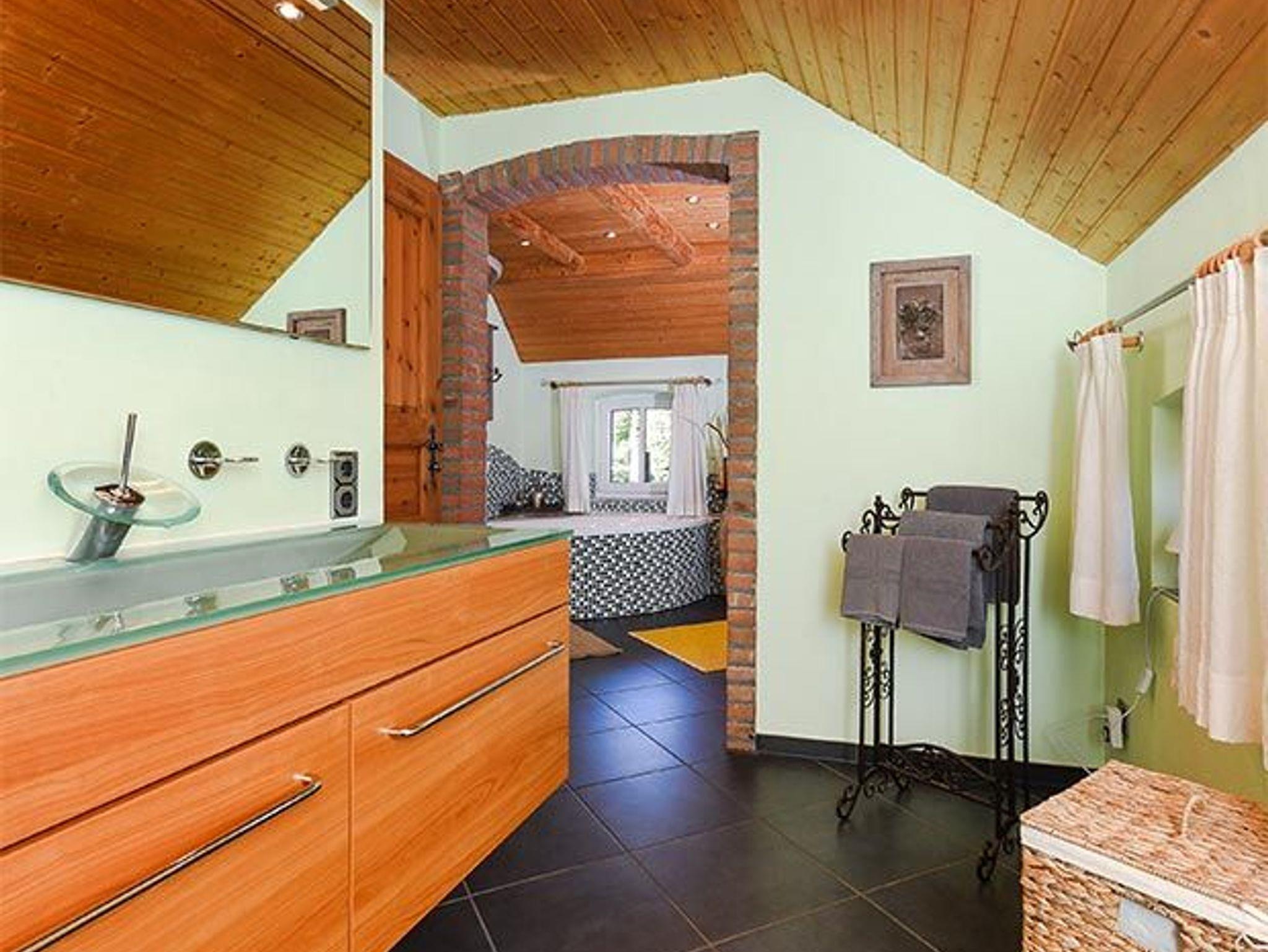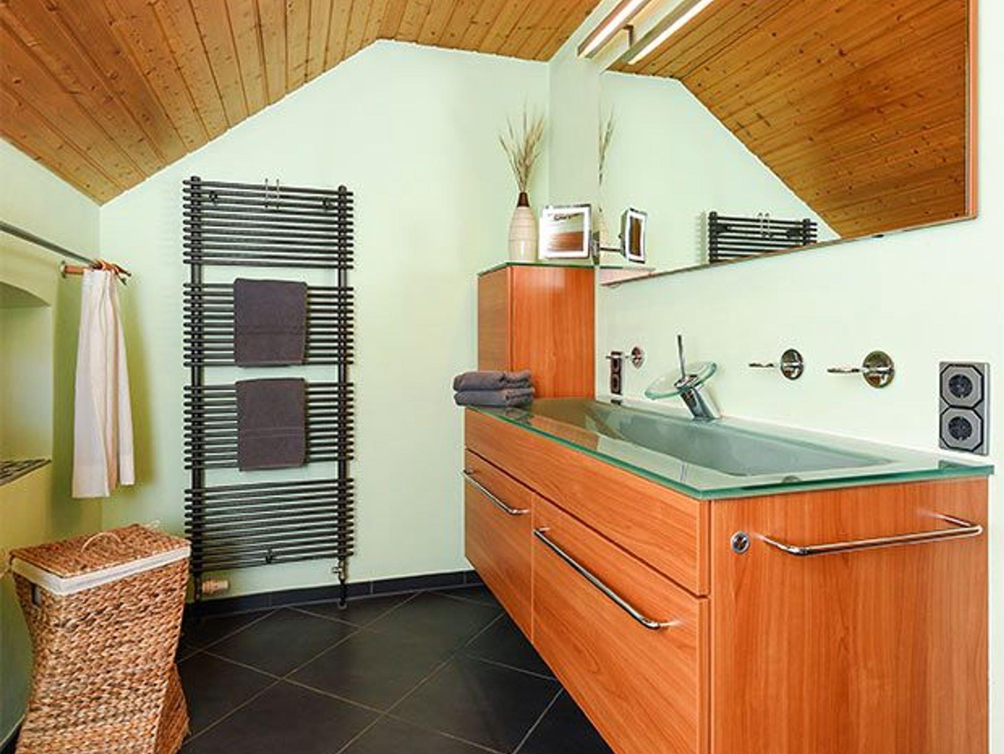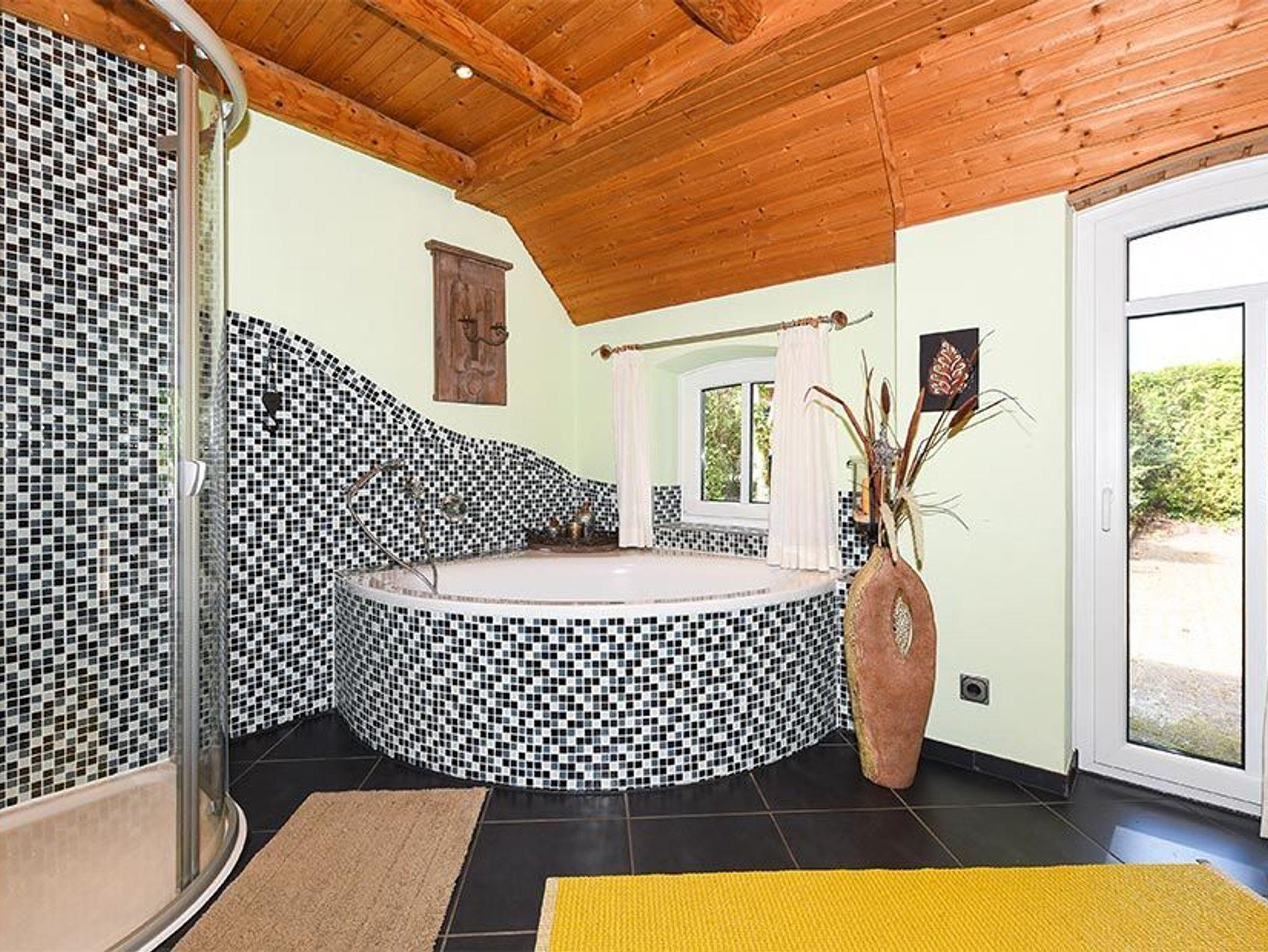Badezimmer mit Badewanne, Dusche, Waschtisch und WC