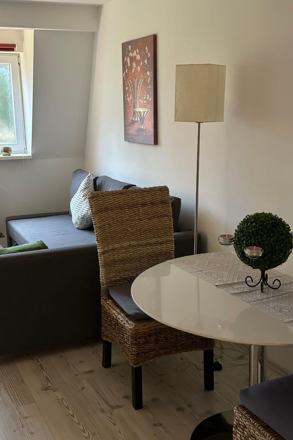 In our charming holiday home, you can expect high-quality interior furnishings and thoughtful amenities to make your stay comfortable. The separate bedroom guarantees peace and privacy, while the spacious eat-in kitchen with dishwasher, dining area and cosy living area invites you to linger. Ideal for two people, our flat also offers space for a third guest on a comfortable sofa bed. A modern shower room rounds off the exquisite furnishings, which also include travel cots, high chairs and other accessories for our youngest guests.