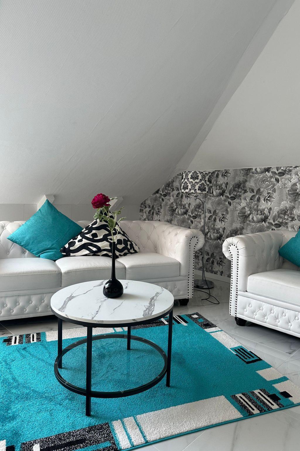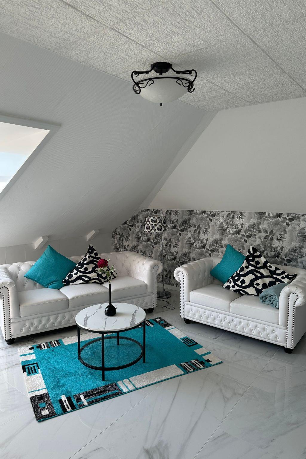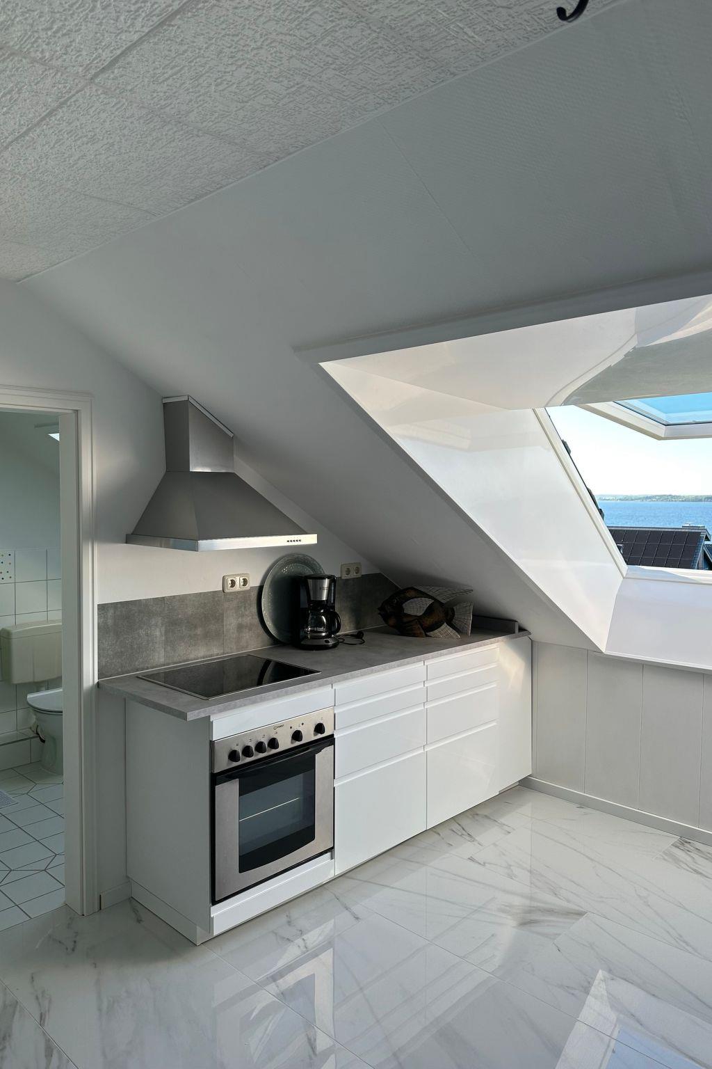 Inside, you will find a perfectly equipped flat that combines modern comfort with a cosy ambience. The kitchen is equipped with everything your heart desires, including a coffee machine and kettle for cosy mornings. The living and dining area is the ideal place to enjoy meals together or simply relax. The bedroom with a comfortable double bed promises restful nights. The highlight: underfloor heating throughout the flat provides cosy warmth. The modern shower room also leaves nothing to be desired.