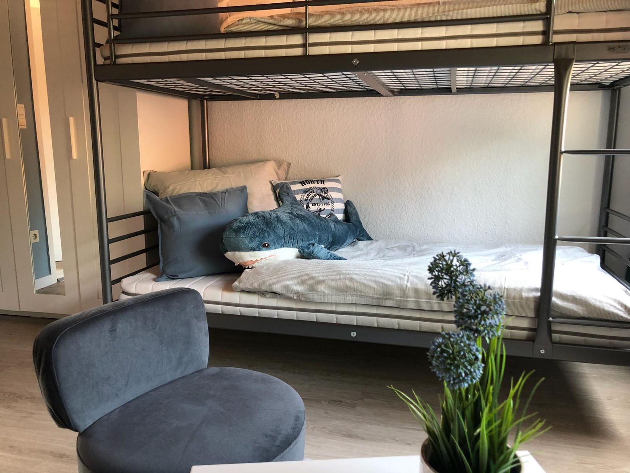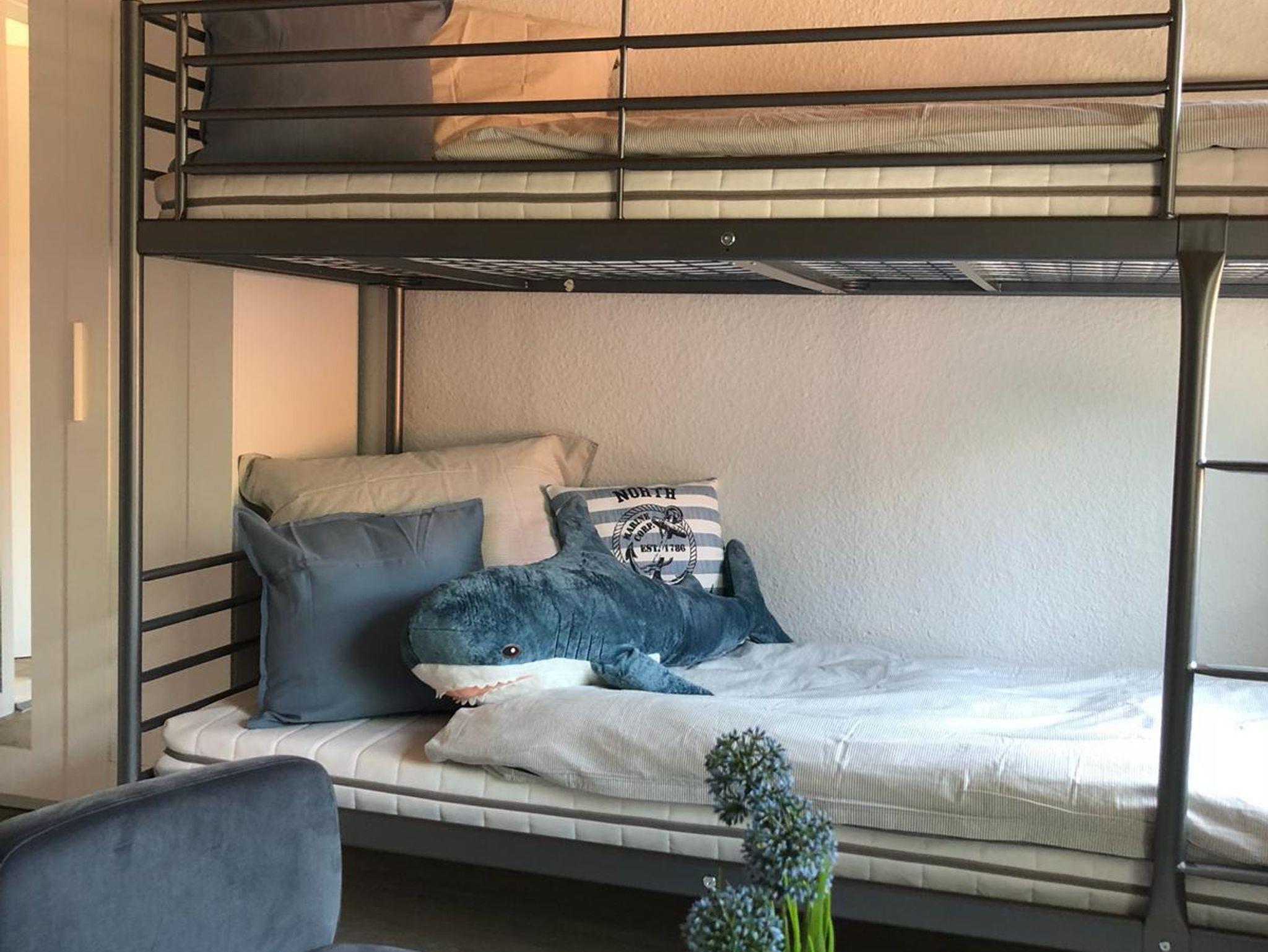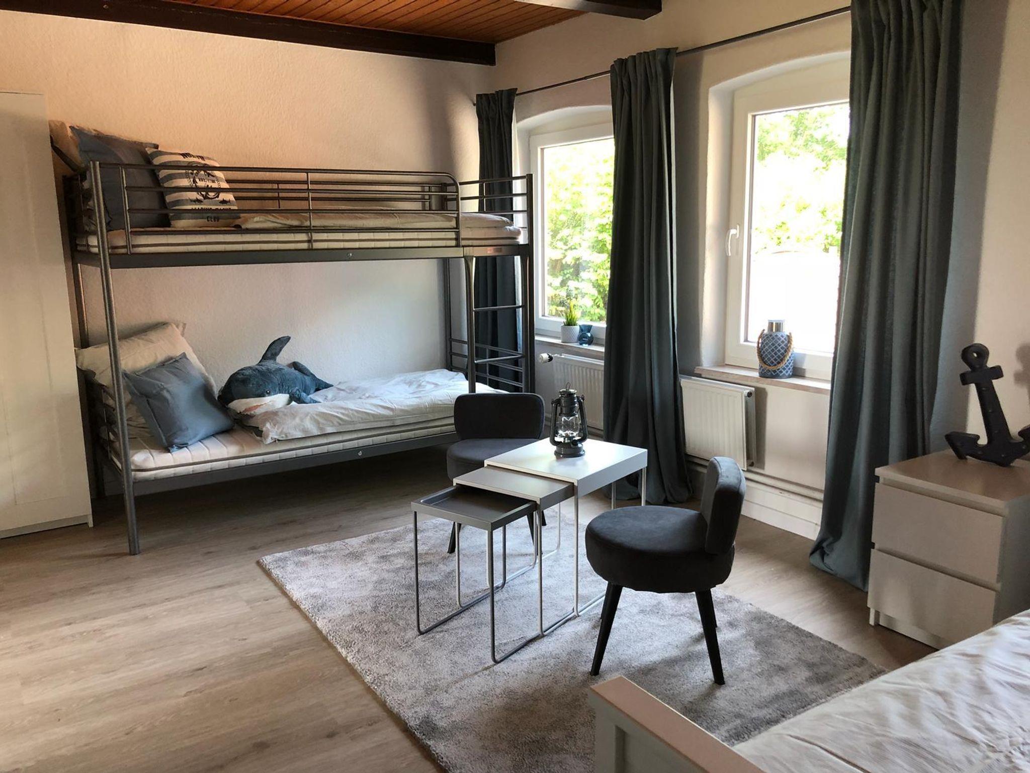 • 1 Schlafzimmer mit 1 Einzelbett & 1 Etagenbett für Kinder