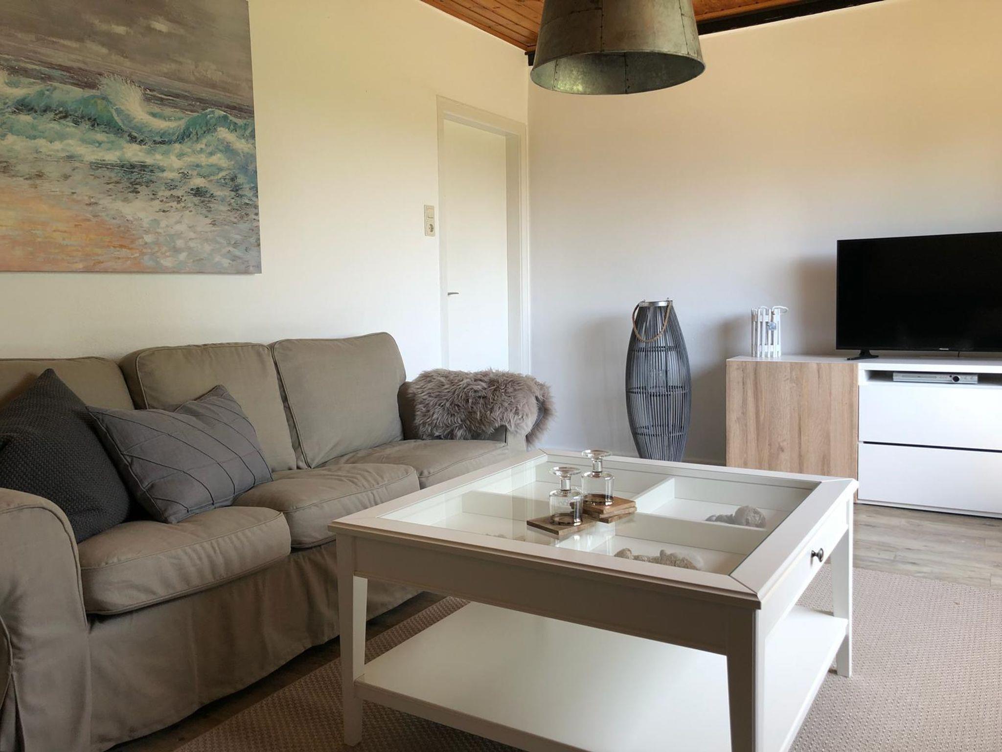 • 1 Wohnzimmermit Sitzgarnitur und TV