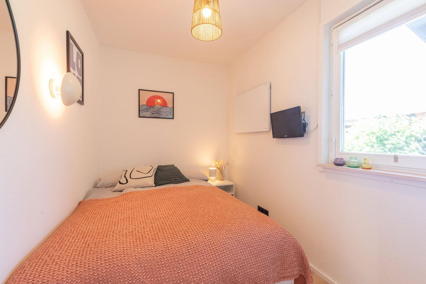 Im Haus gibt es zwei Schlafzimmer. Im großen Schlafzimmer gibt es ein bequemes Doppelbett (180 x 200 cm) und im kleineren Schlafzimmer ein Doppelbett (140 x 200 cm) sowie ein kleines TV gerät. In beiden Schlafzimmern gibt es Aufbewahrungsmöglichkeiten für Kleidung.