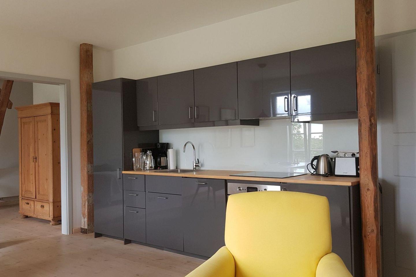 Das Hay Loft befindet sich im Obergeschoss des ehemaligen Stalltraktes der Hofanlage „Kiekut“ und ist ruhig nach Süden ausgerichtet. Von hier genießen Sie einen weiten Blick über die sanfte Angeliter Landschaft – ideal für alle, die dem Alltag entfliehen und dabei nicht auf Komfort verzichten möchten.