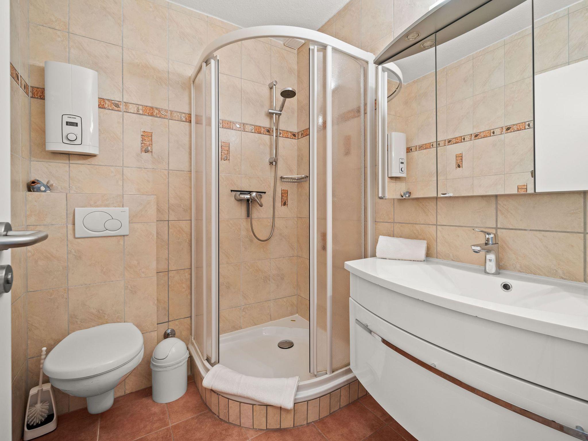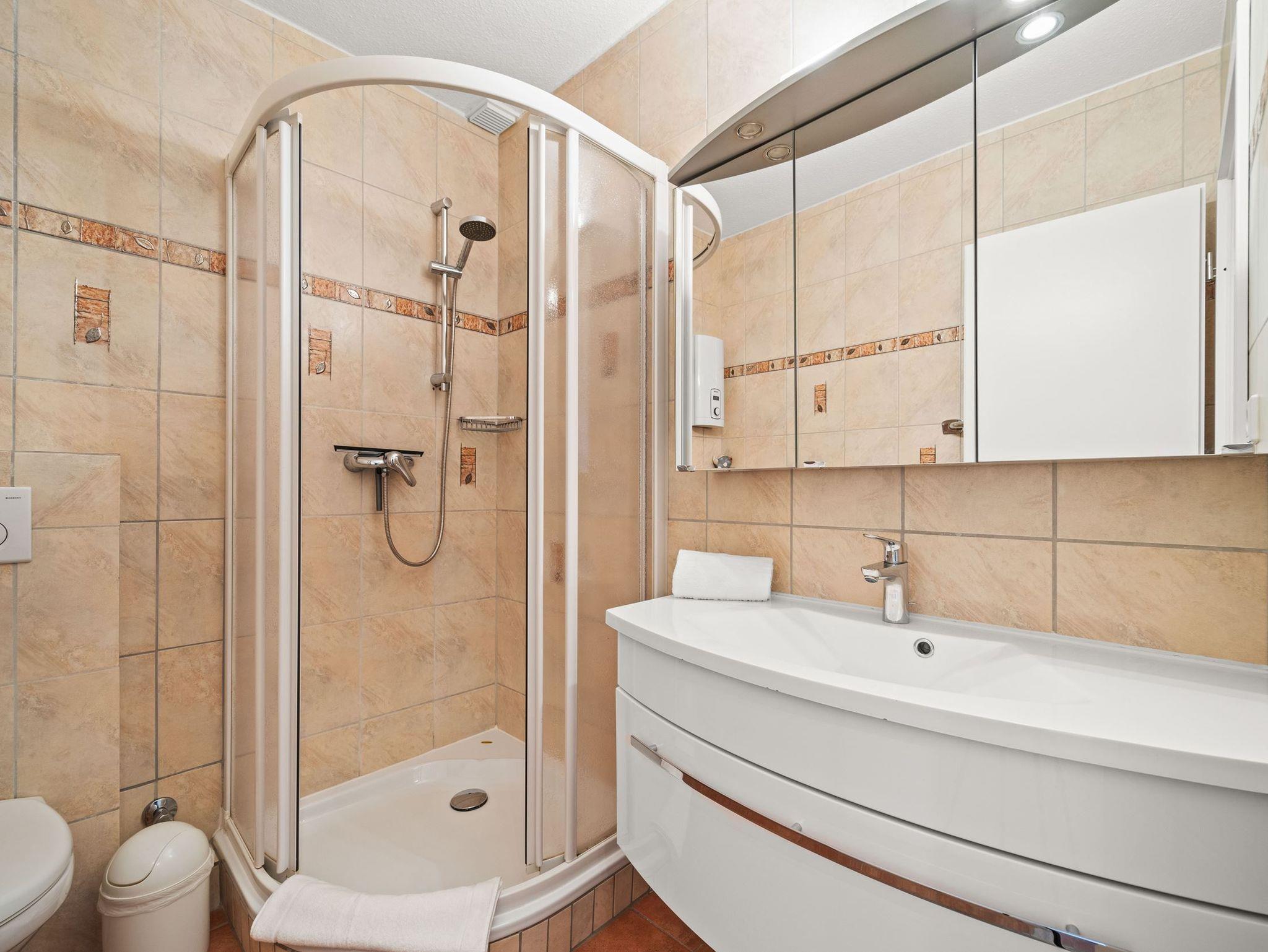 Die Unterkunft liegt im 1. Obergeschoss und hat einen großen, möblierten Balkon nach Osten. Ausgestattet mit Flachbildschirm und Radio im Wohnzimmer. Die Einbau-Küche ist mit Ceran-Kochfeld und Mikrowelle. Die Wohnung ist außerdem mit einem Internetzugang ausgestattet (gebührenfrei). Zudem steht Ihnen ein Telefon zur Verfügung, die Anrufe in das Deutsche Festnetz sind gebührenfrei für Sie. Zu der Wohnung gehört der Garagenstellplatz Nr. 11 auf der Palette (Bis 1,70 Meter Höhe). Die maximale Fahrzeugbreite beträgt 1,90 Meter, die maximale Fahrzeuglänge 5,00 Meter und die maximale Spurweite beträgt 1,85 Meter.