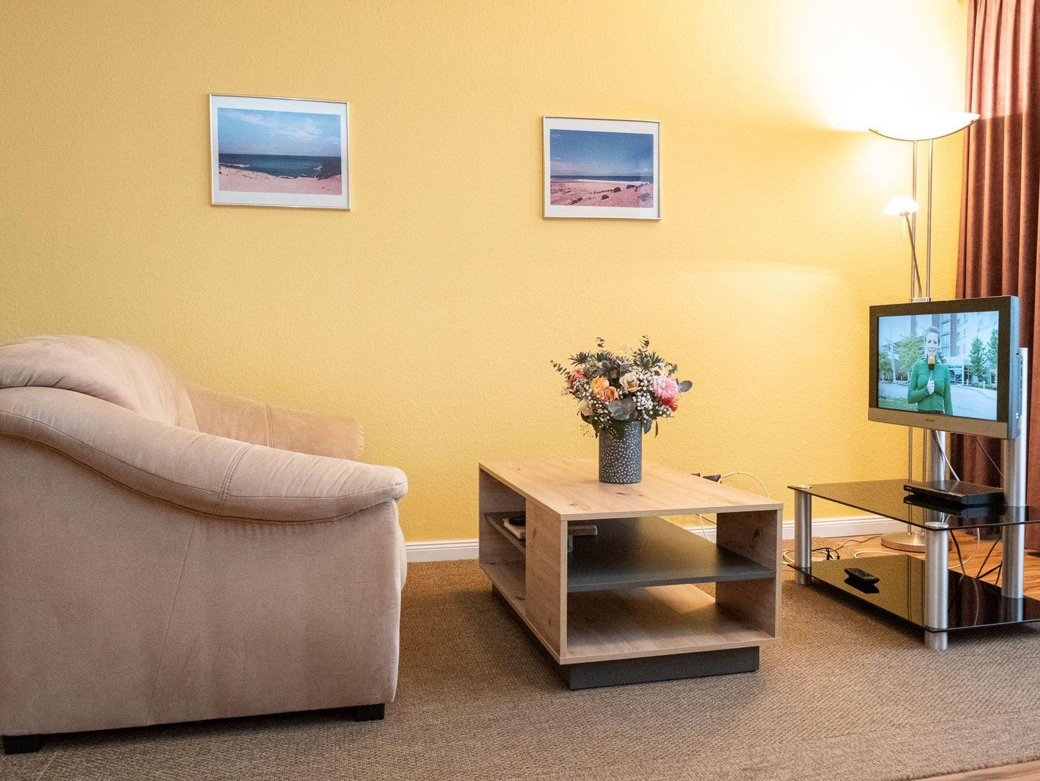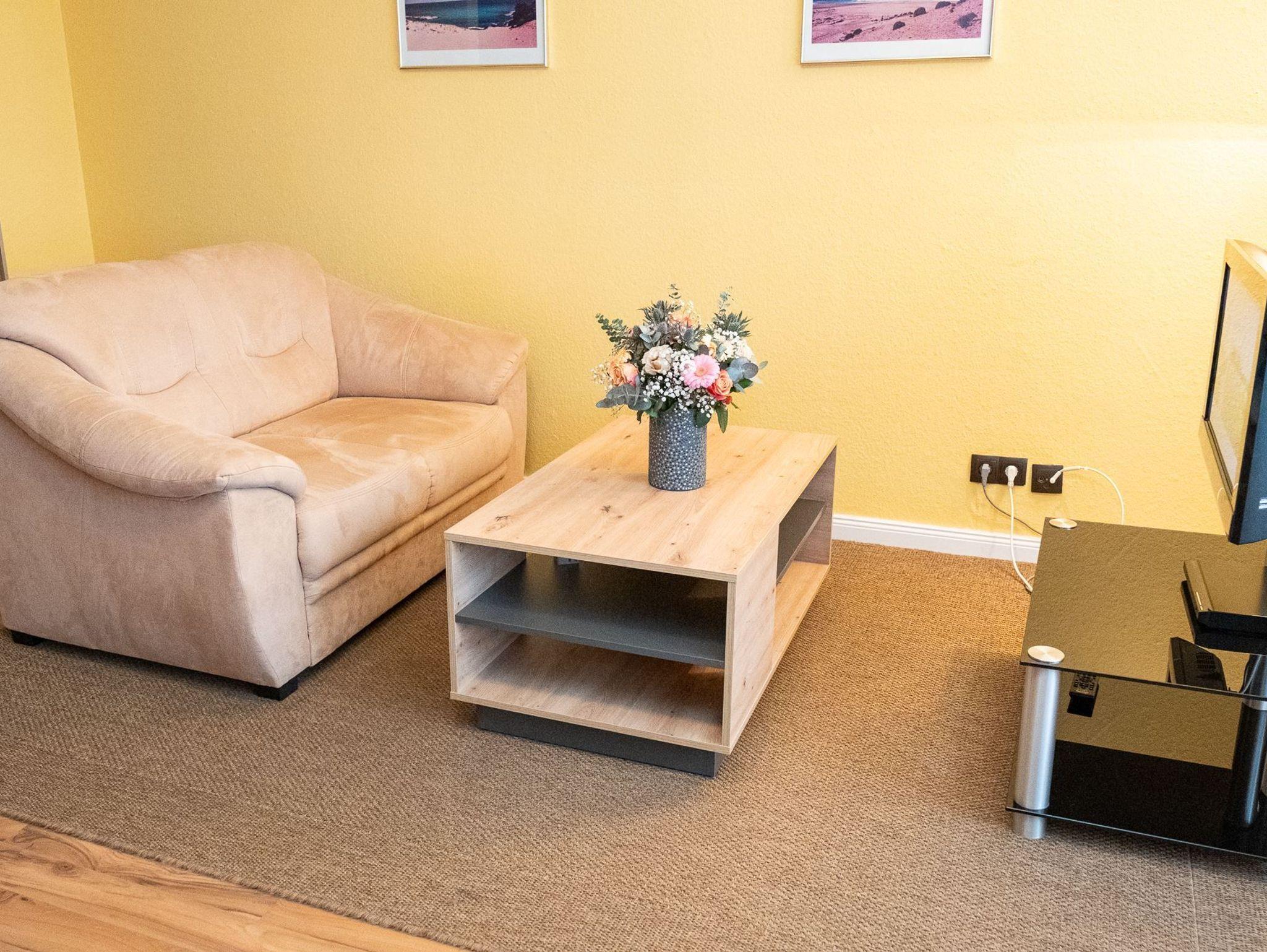 Die Unterkunft befindet sich im 1.OG. Das modern eingerichtete Appartement glänzt mit gemütlicher Atmosphäre. Da sich das Doppelbett bequem im Schrank verstauen lässt, ist tagsüber reichlich Platz im Wohnzimmer vorhanden.