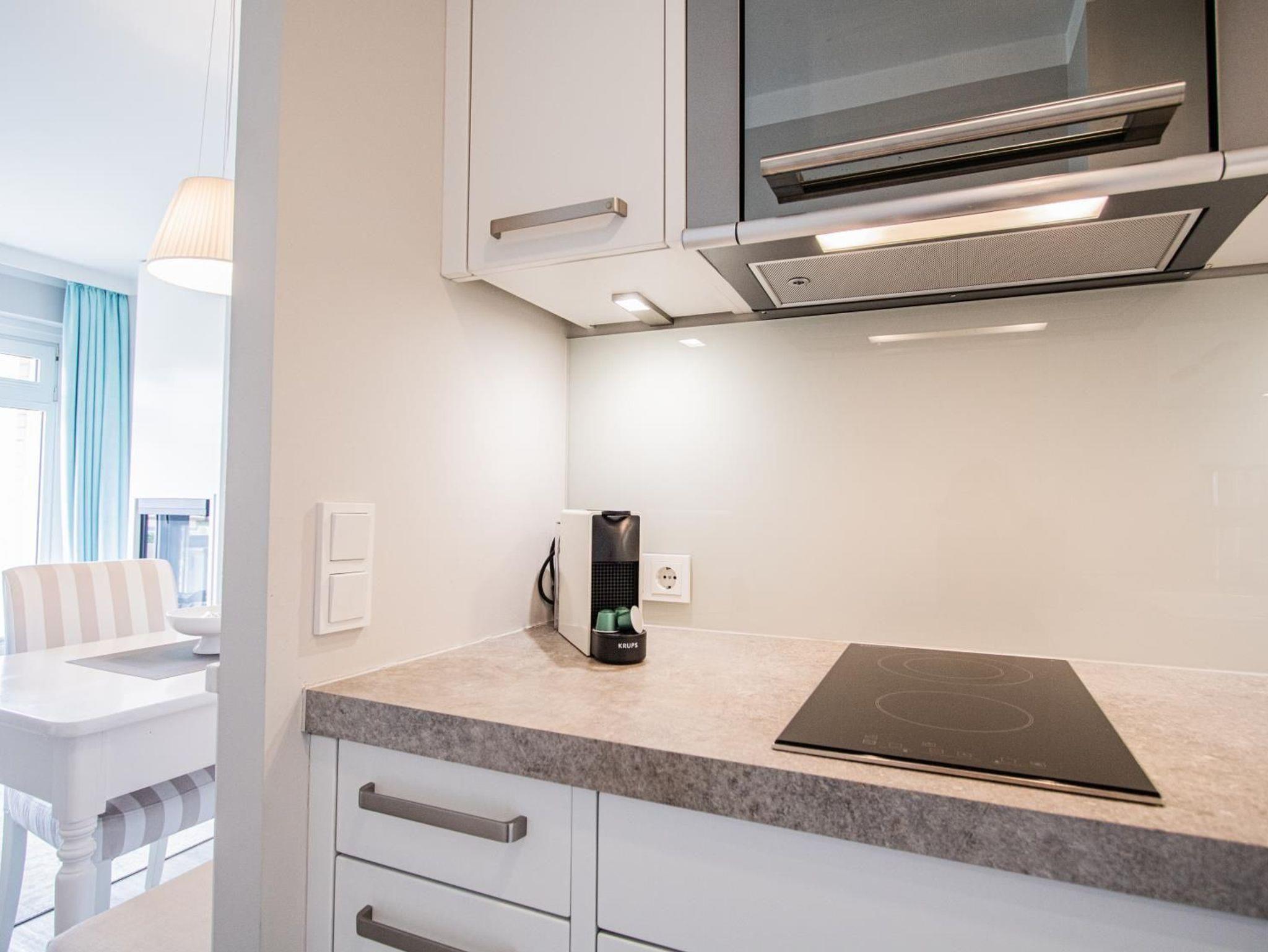 Hochwertig und geschmackvoll eingerichtetes 2-Zimmer-Appartement im Süden von Westerland in sehr ruhiger Lage. Im separaten Schlafzimmer befinden sich 2 Einzelbetten und ein großer, geräumiger Einbauschrank. Im Wohnzimmer ist ein Schlafsofa und der Zugang zum Westbalkon. Das Besondere im Wohnzimmer ist ein elektrischer Kamin. Die offene Küche ist komplett ausgestattet mit u. a. Spülmaschine und Mikrowelle mit Backfunktion.