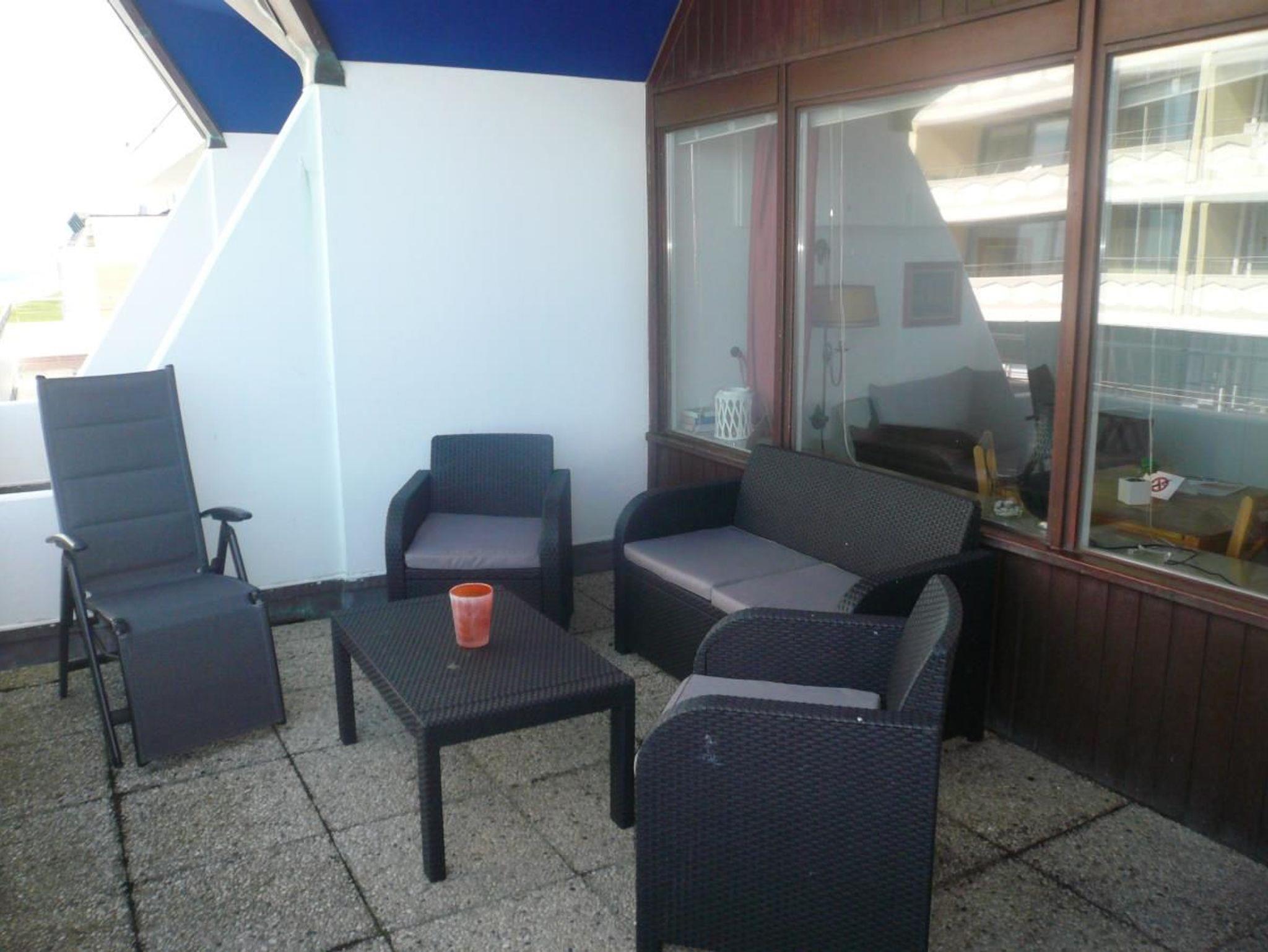 Dieses 1-Zimmer-Appartement befindet sich in der 8. Etage des Appartementhauses Haus am Meer. Diese Etage ist die oberste und damit die Penthouse-Etage, die vom 7. OG über eine Treppe zu erreichen ist. Das Haus steht direkt am Hauptstrand zwischen den beiden Fußgängerzonen.