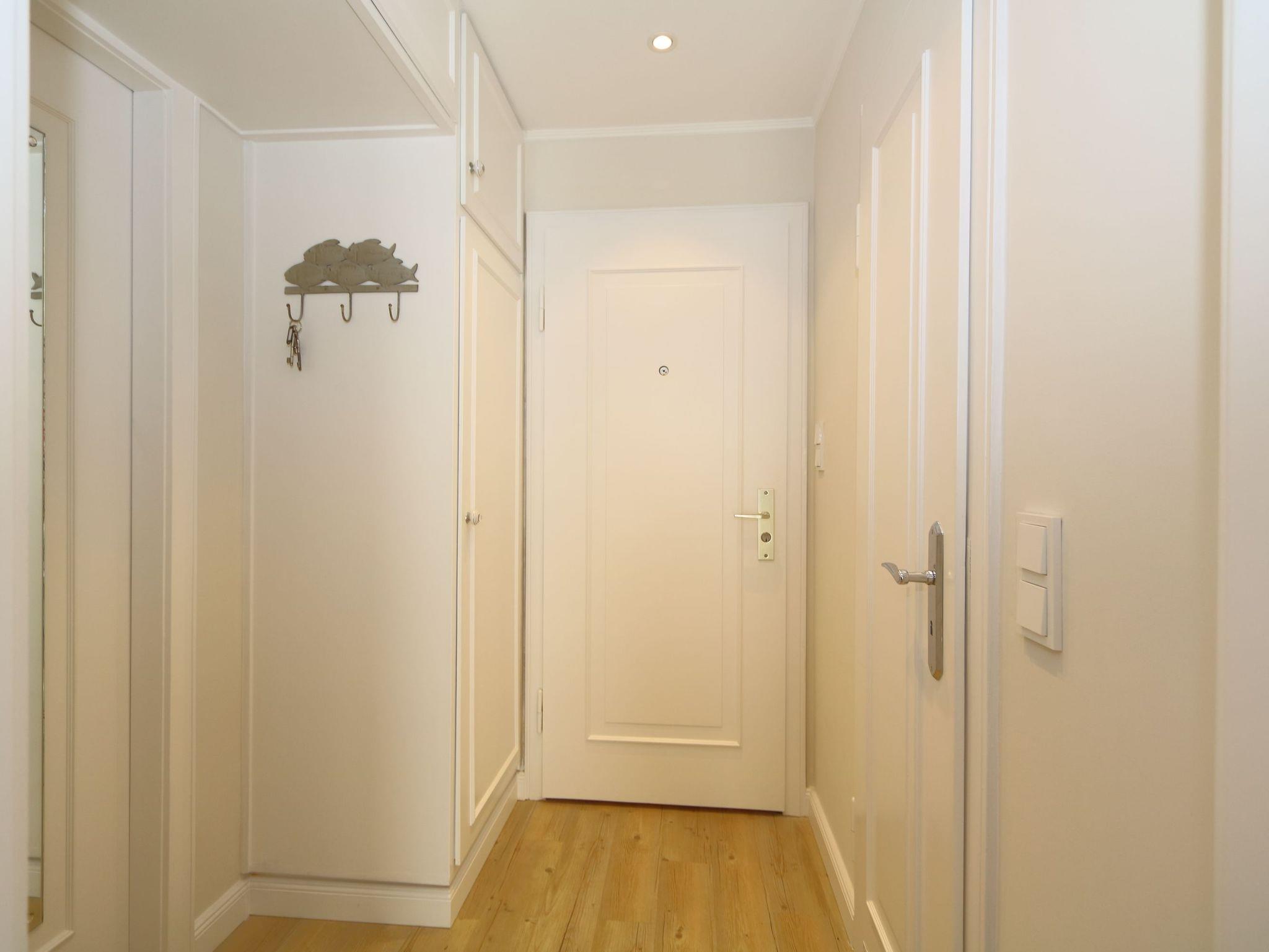 Die Ferienwohnung ist mit viel Liebe zum Detail stil- und geschmackvoll eingerichtet. Im Flur befinden sich zwei Einbauschränke. Von dort aus gelangt man in das neue, moderne Duschbad mit Regendusche und Fön. sowie in das Schlafzimmer und Wohnzimmer mit Zugang zum Balkon.