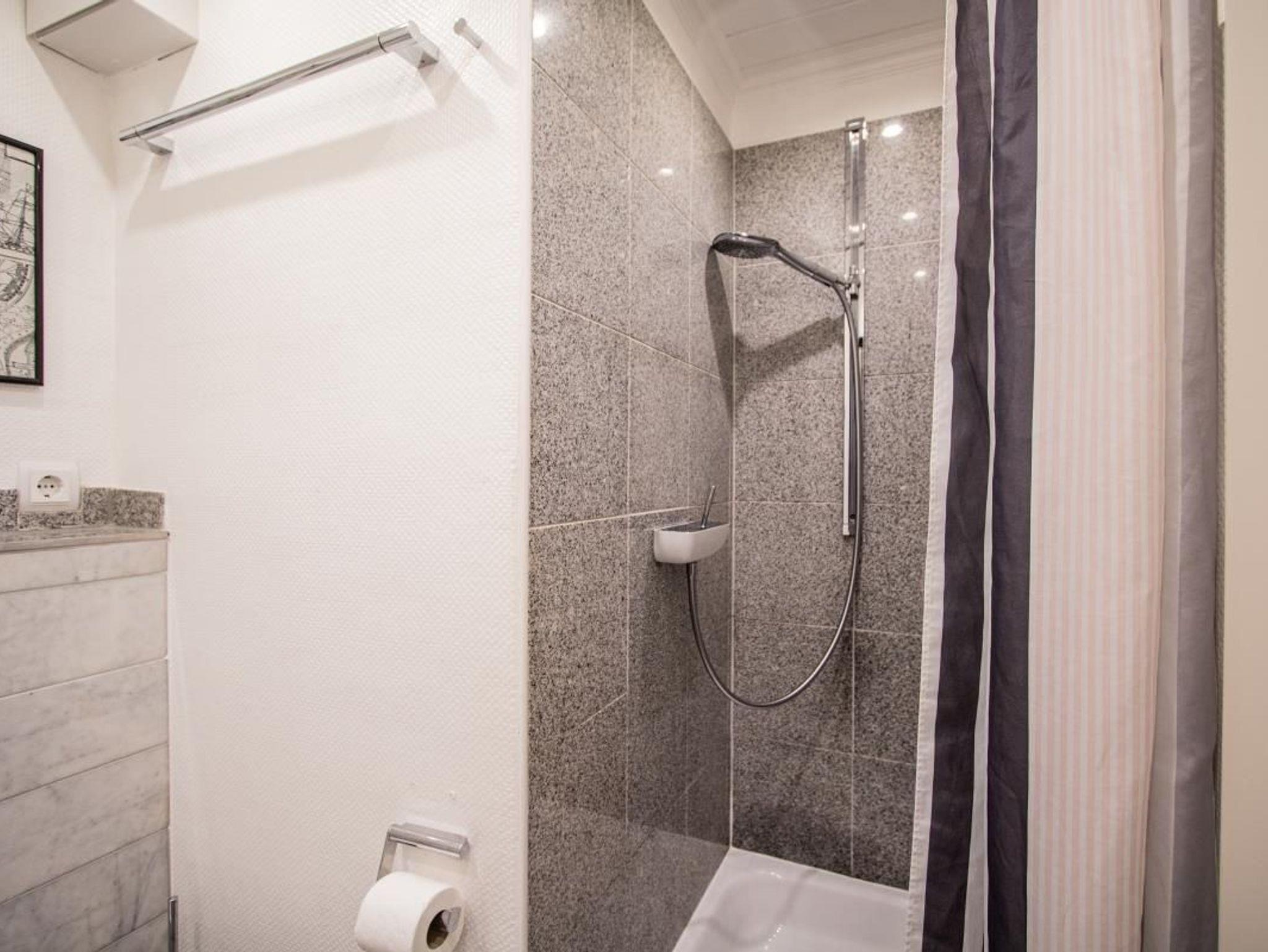 Im Flur befindet sich eine Garderobe. Von hier aus kommen Sie in das moderne Duschbad.
