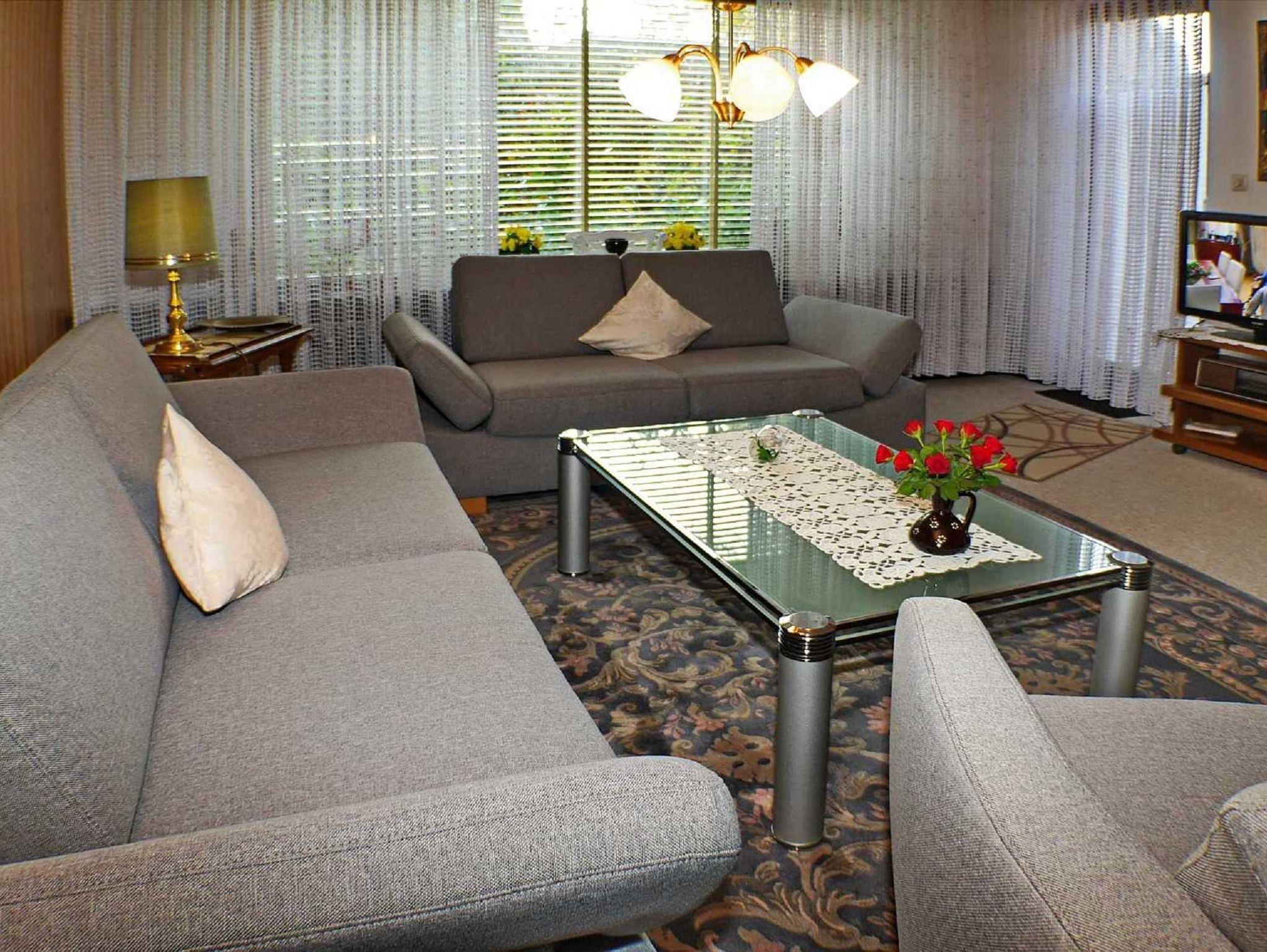 Das gemütliche Wohnzimmer ist mit Couchgarnitur, Flachbild-TV und Esstisch mit 4 Stühlen ist der Mittelpunkt dieser Wohnung.