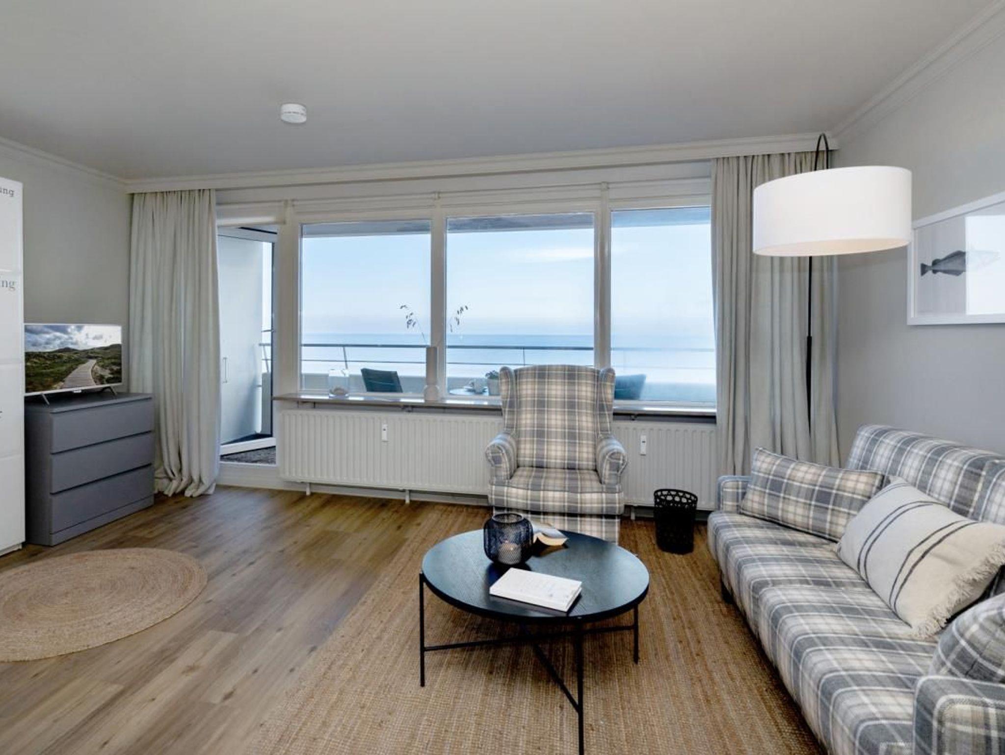 Das Seeblick-Appartement mit Westbalkon befindet sich in der 4. Etage eines gepflegten Appartementhauses im Kurzentrum, direkt am Hauptstrand. Das Haus liegt zentral in Westerland, zwischen den beiden großen Fußgängerzonen.
