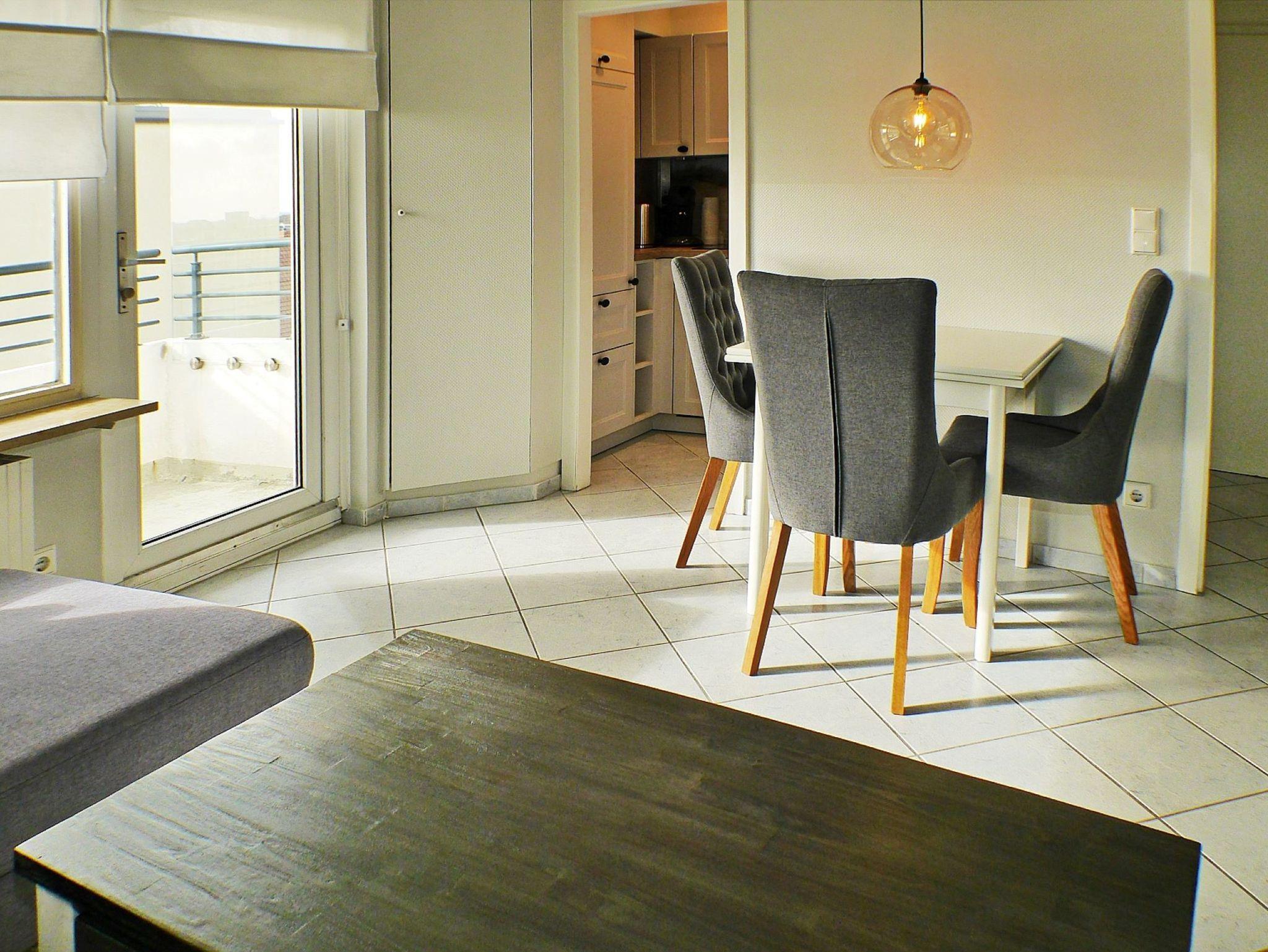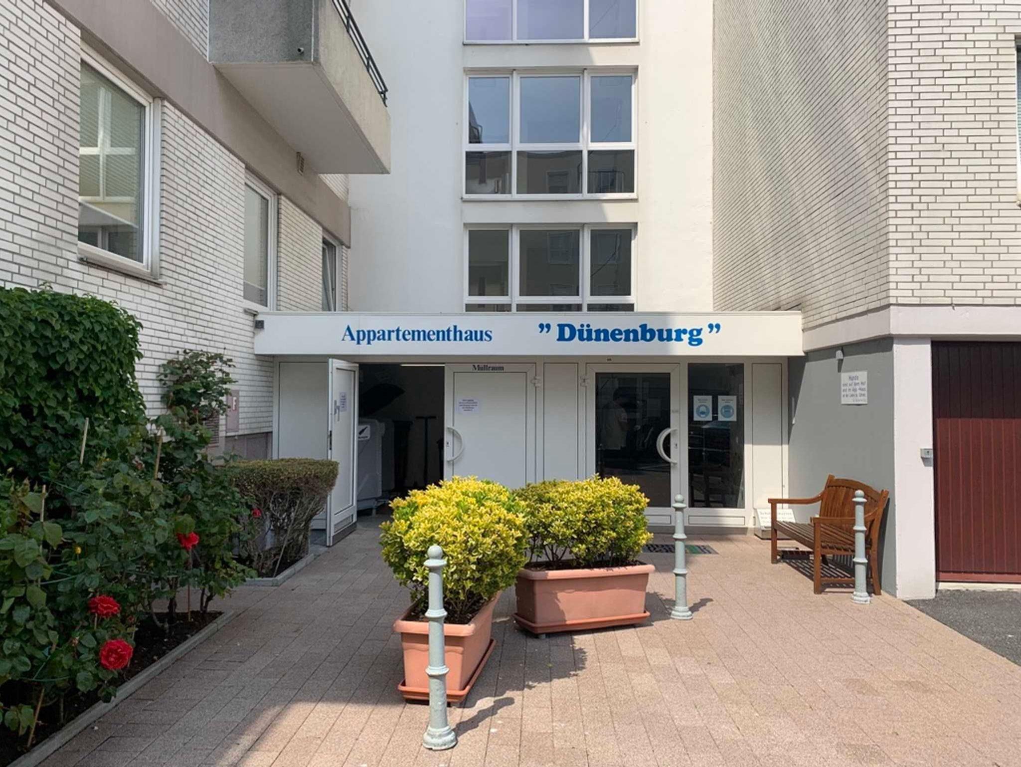 In zentraler-Toplage nicht weit vom Strand liegt das 5-geschossige Appartementhaus Dünenburg mit Lift.