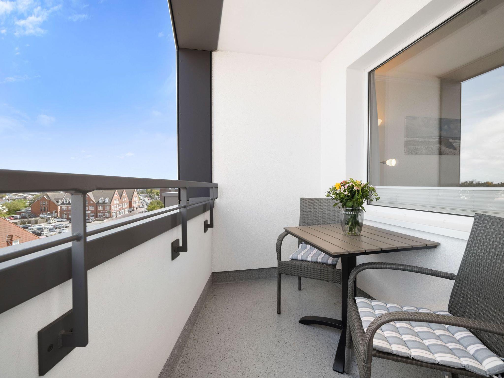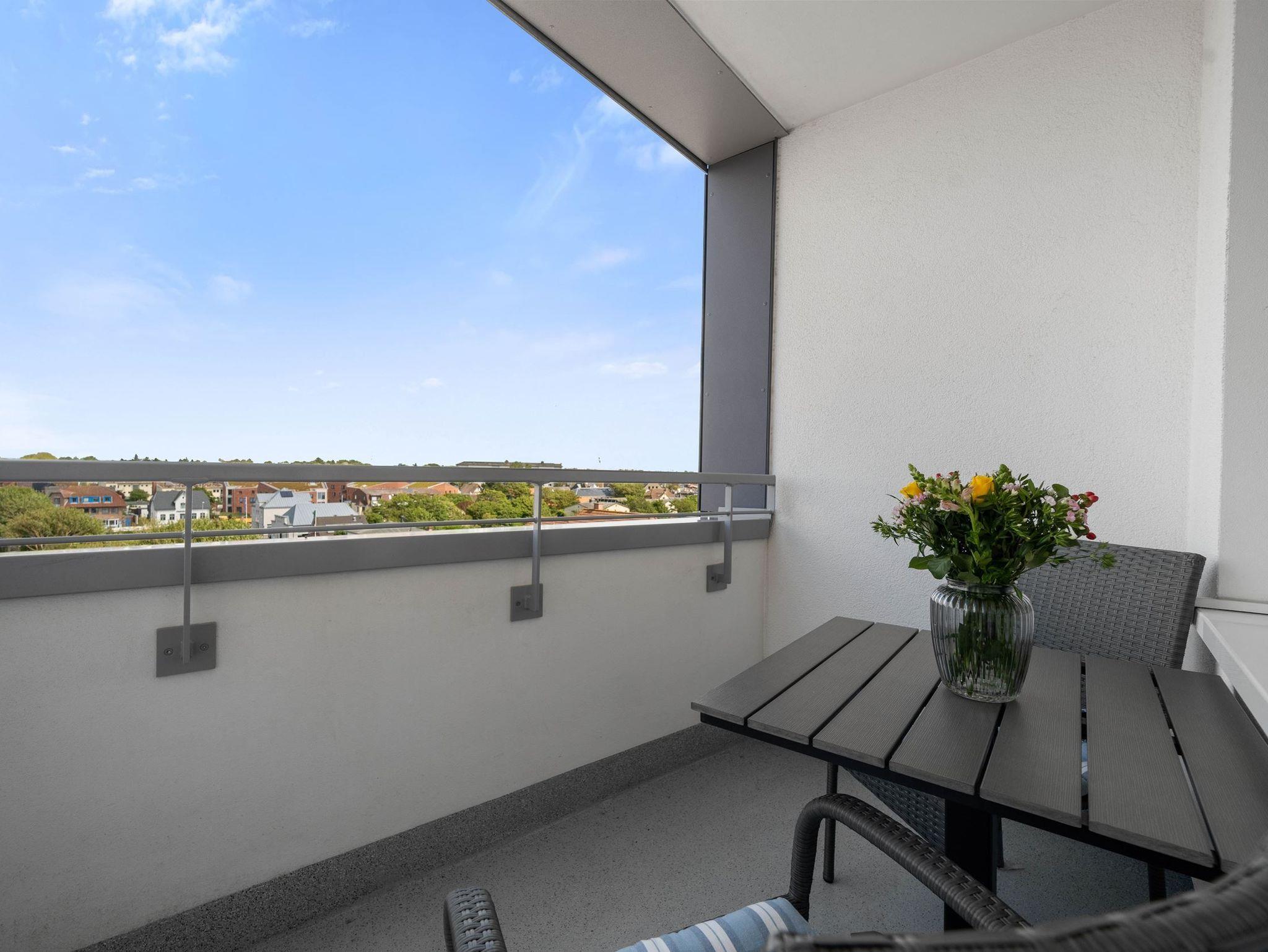Die Wohnung befindet sich im 5. Obergeschoss mit Balkon, welcher nach Osten ausgerichtet ist und über Balkonmöbel verfügt.