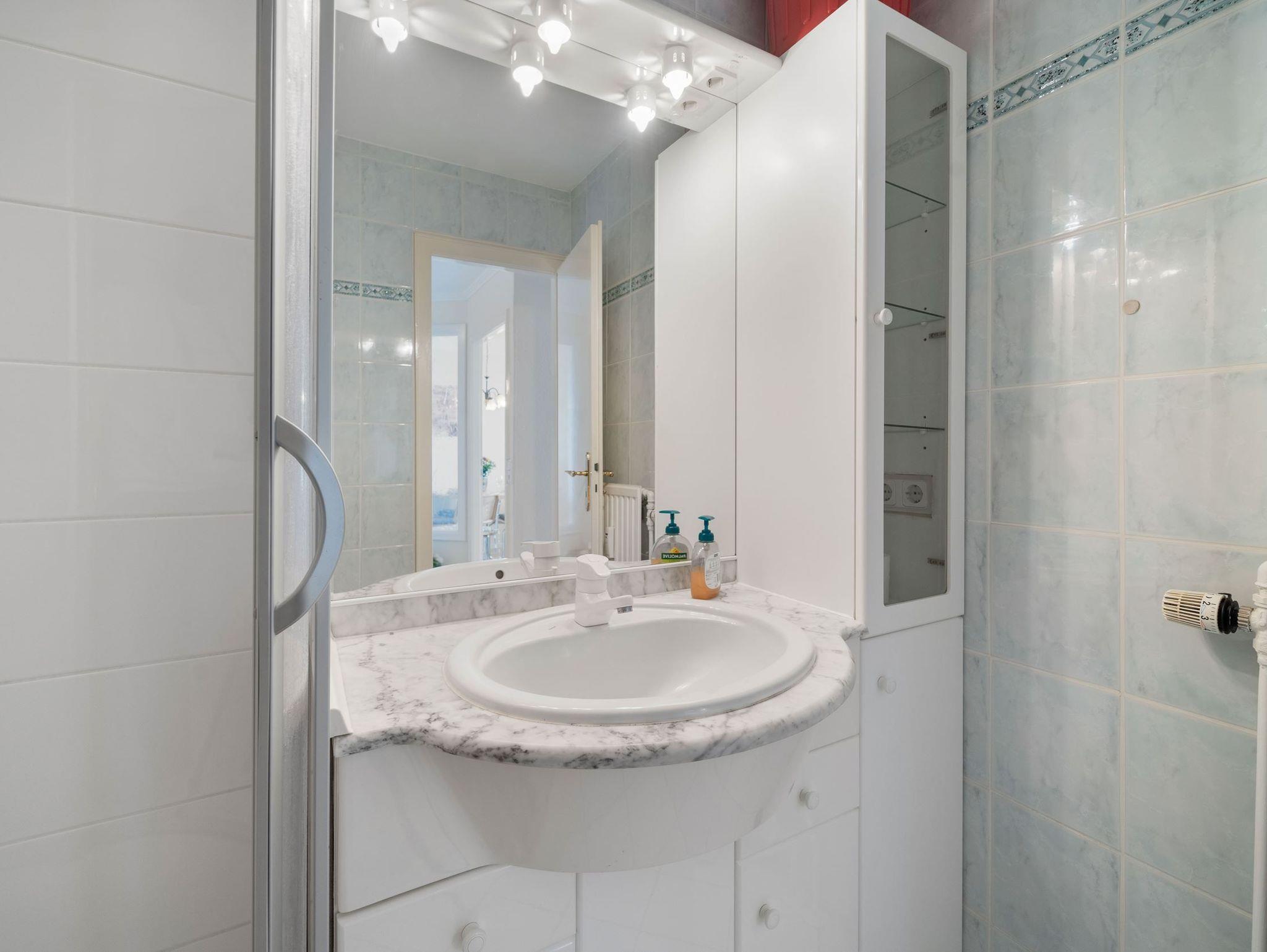 Das Badezimmer ist mit Dusche/WC ausgestattet.