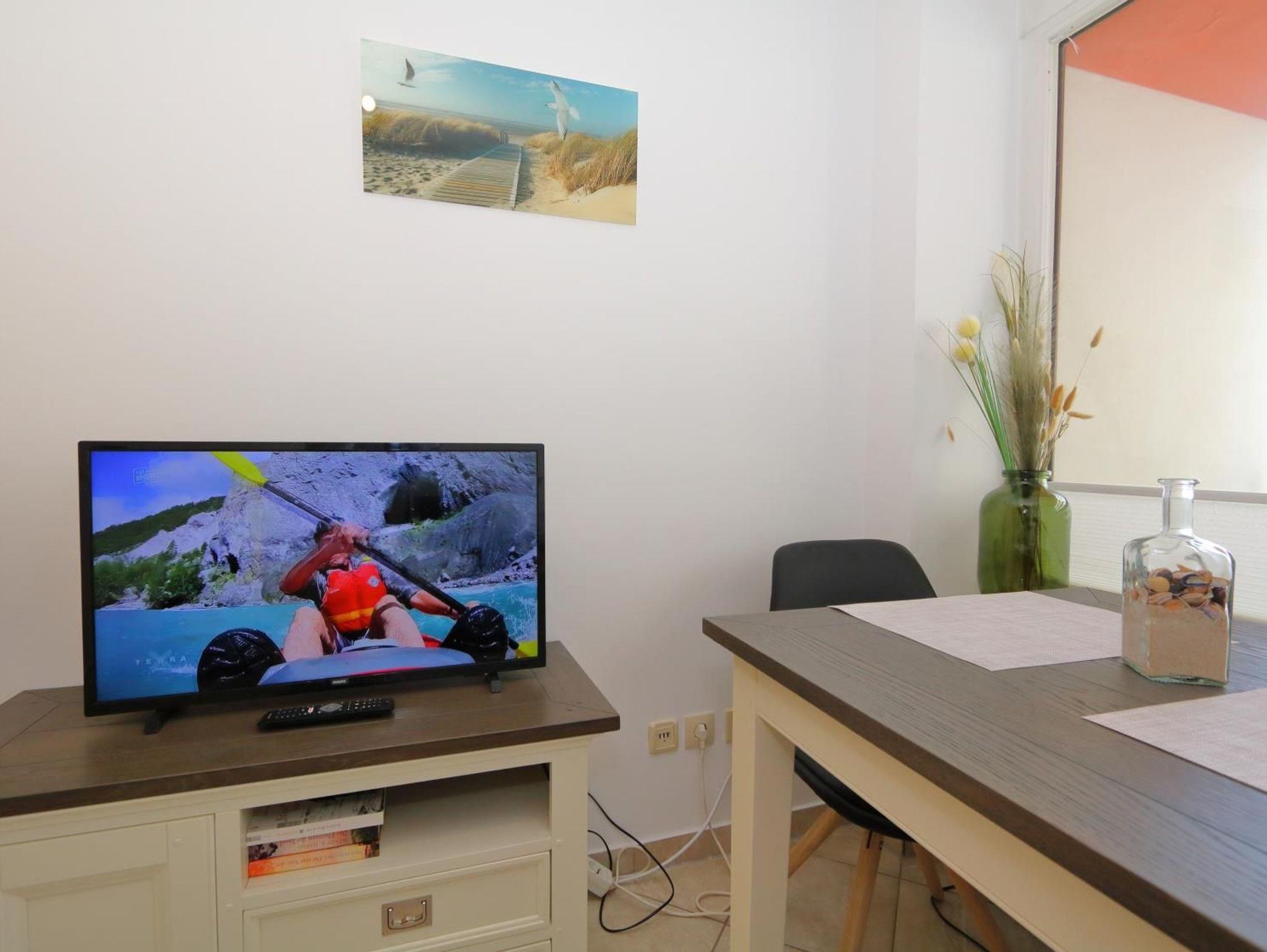 Wohn-/Schlafzimmer mit TV SAT/Kabel, W'Lan, Sofa, Eßtisch sowie Zugang zum Balkon.
