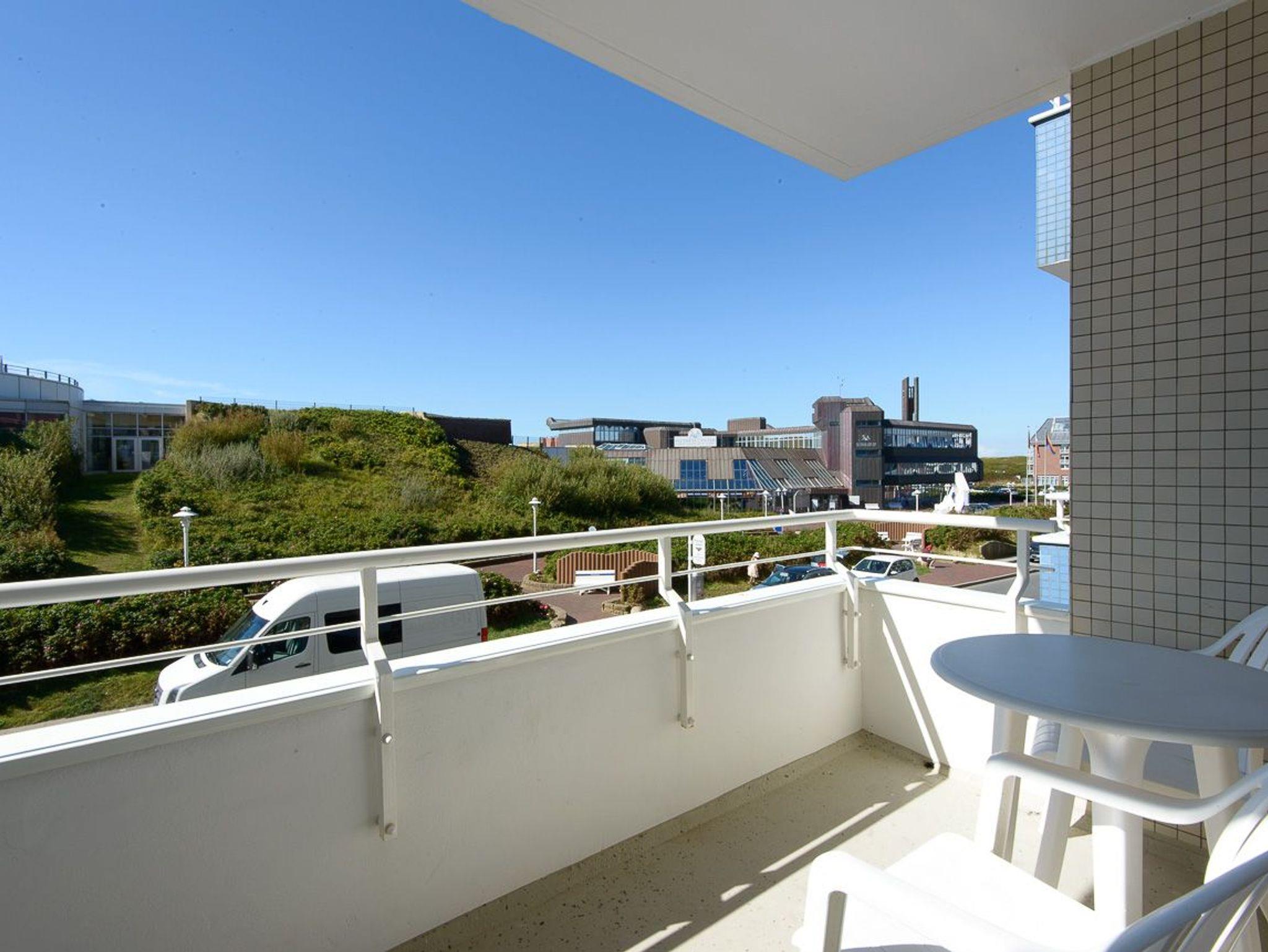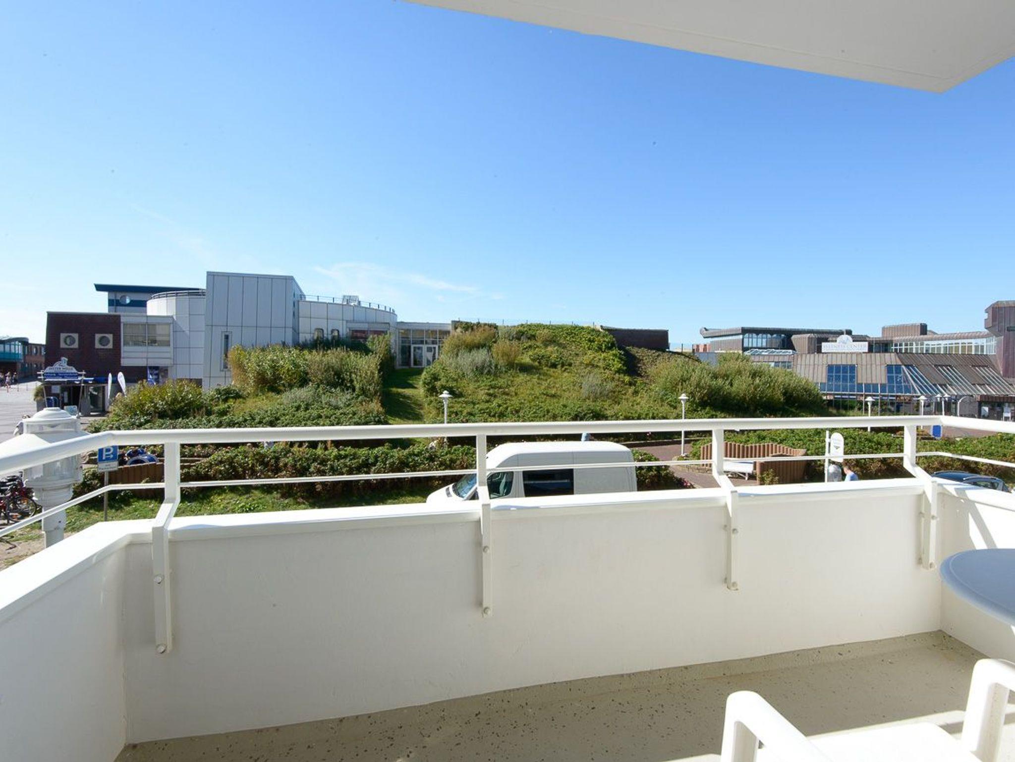 Der ca. 20 m² große Wohnraum ist geschmackvoll und gemütlich eingerichtet und bietet direkten Zugang zum Balkon, der zum Verweilen an der frischen Nordseeluft einlädt. In dem großzügigen Einbauschrank befindet sich eine zusätzliche Schlafmöglichkeit für zwei Personen (140 × 200 cm).