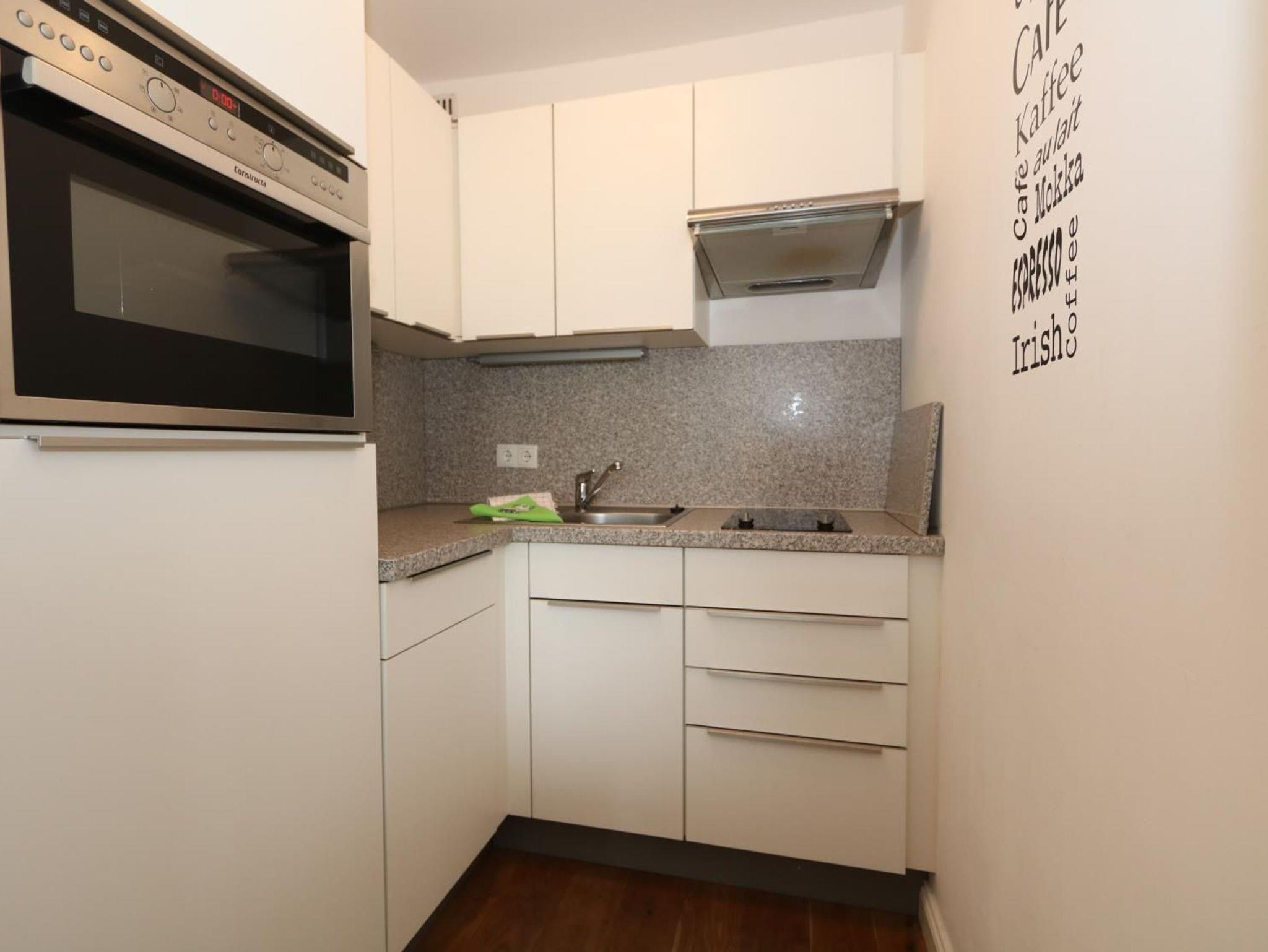 Vom Essplatz für bis zu vier Personen gelangen Sie in eine offene, moderne Küche, die vollständig ausgestattet ist und keine Wünsche offenlässt.