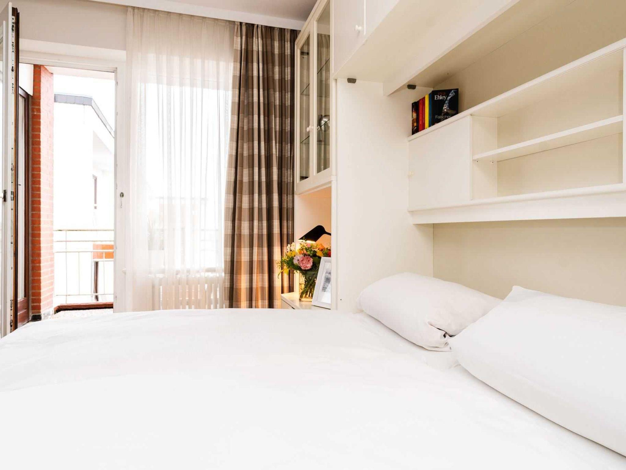 3. Etage, großzügig geschnitten, ruhig mit Blick über Einzelhäuser, großer Balkon mit Blick in Richtung Nord- Osten , Flachbildfernseher mit Radiofunktion, DVD-Player, Blu Ray Player, Einbau-Küche mit Ceran-Kochfeld, Mikrowelle, Tiefgaragenplatz, Schwimmbad und Sauna. Waschraum (Waschmaschine und Wäschetrockner) auf der Etage.