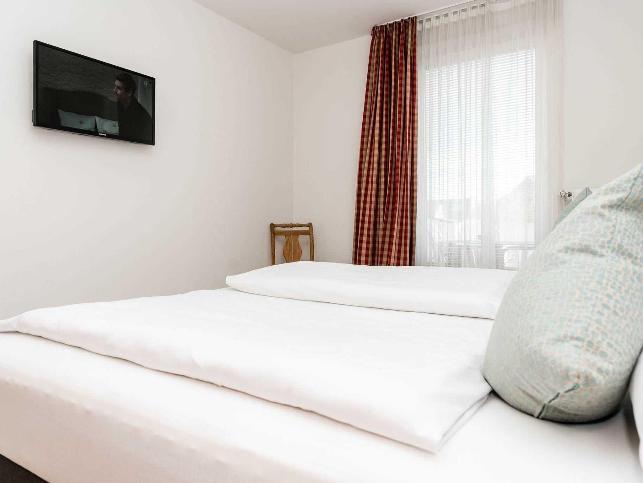 Die Wohnung verfügt zudem über ein separates Schlafzimmer mit Doppelbett ( 1,80 x 2,00 m). In dem weiteren kleinen, innenliegenden Schlafzimmer befindet sich ein Doppelbett ( 1,40 x 2,00 m) . Durch diese Gestaltung ist es möglich, dass 2 Erwachsene und 2 Kinder bequem untergebracht werden, ohne, dass jemand im Wohnzimmer schlafen müsste. Das Appartement ist sehr stilvoll und gemütlich eingerichtet.