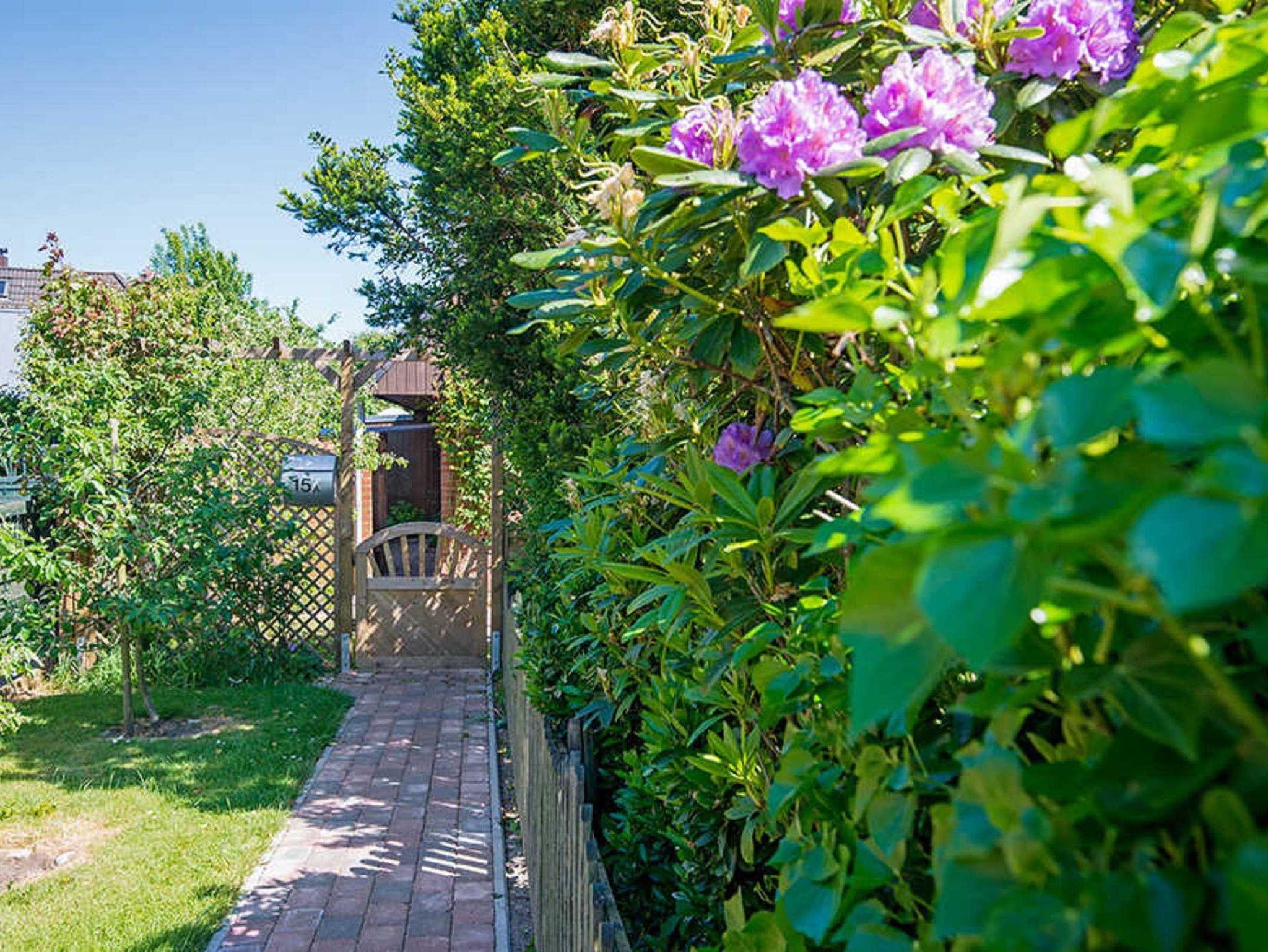 Auf dem eingewachsenen Grundstück befindet sich eine wunderschöne Sitzecke mit Strandkorb zum Mitbenutzen.