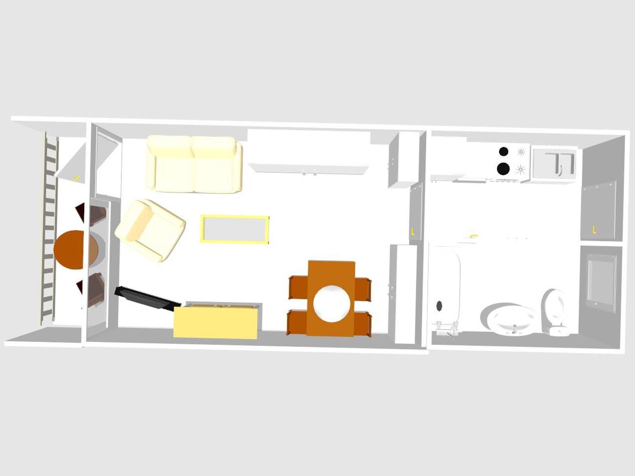 Kombiniertes Wohn/Schlafzimmer mit Schrankbett, die Betten sind für Sie bezogen.