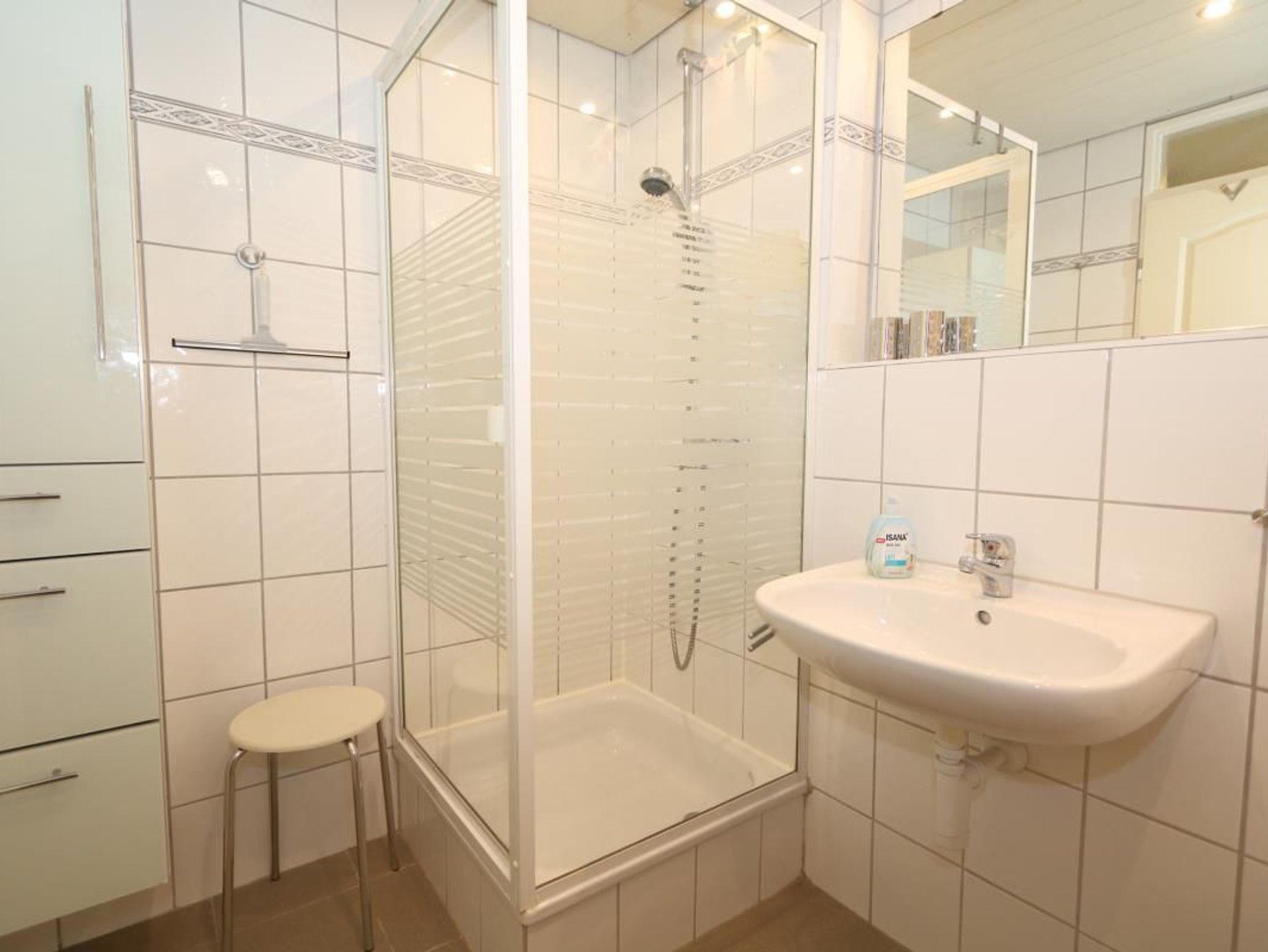 Die moderne Ferienwohnung mit Ostbalkon und Blick über den Sylter osten ist mit einem modernen Badezimmer (Föhn vorhanden) mit Glasduschkabine, einer Küche und einem praktischen Wohn-und Schlafbereich ausgestattet.