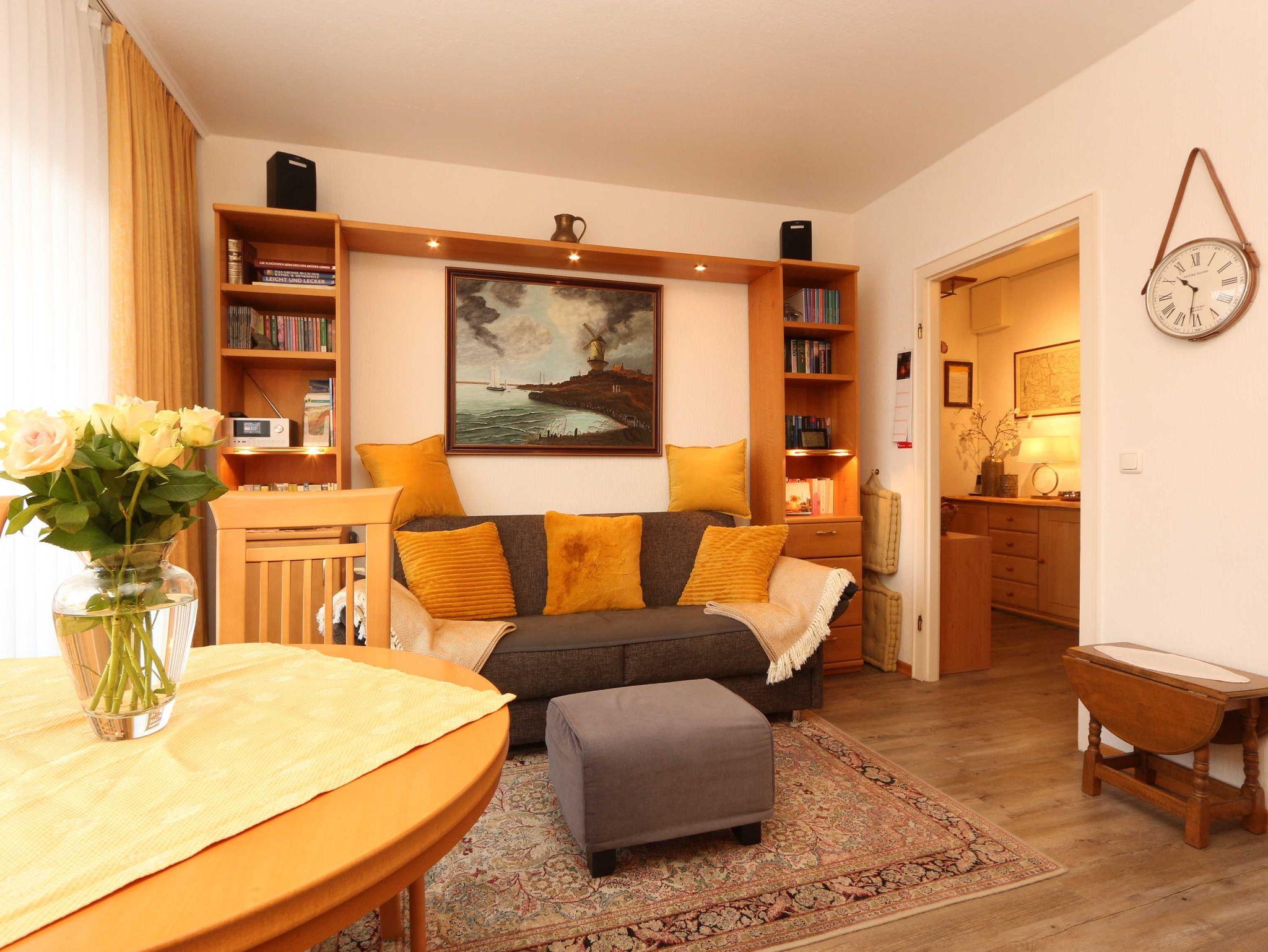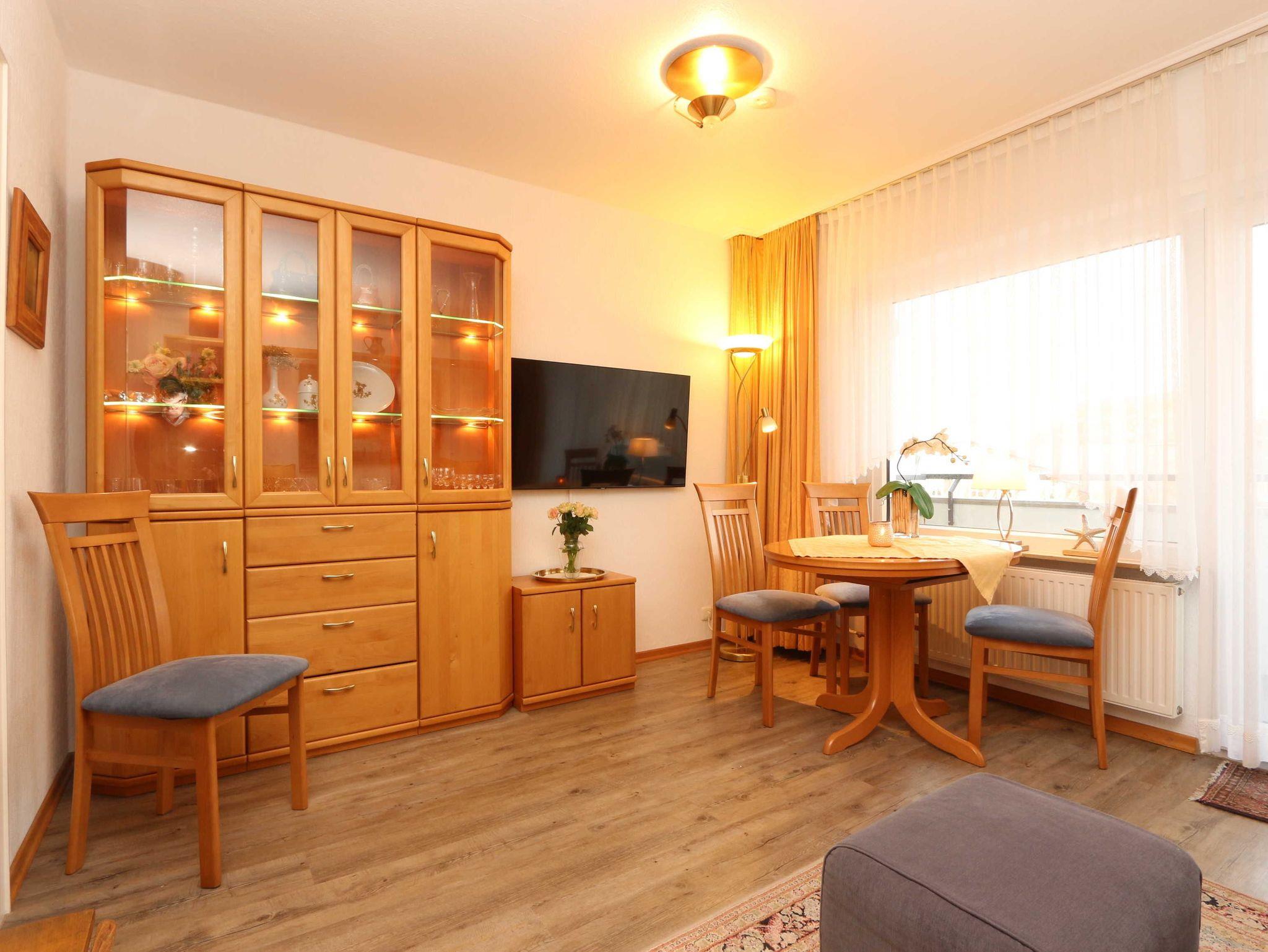 • Das Wohnzimmer ist mit Kabel-TV, Schlaf-Sofa, Esstisch mit 4 Stühlen, Wohnzimmerschrank und Flachbildfernseher und DVD-Player ausgestattet.