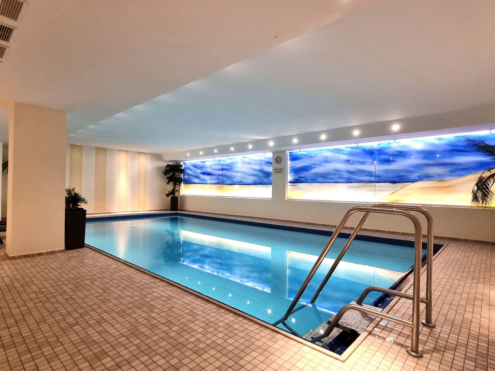 Das Appartementhaus ist mit einem Fahrstuhl ausgestattet, so dass die Gäste direkt und bequem von der Wohnung in das im Kellergeschoss befindliche Schwimmbad gelangen können.