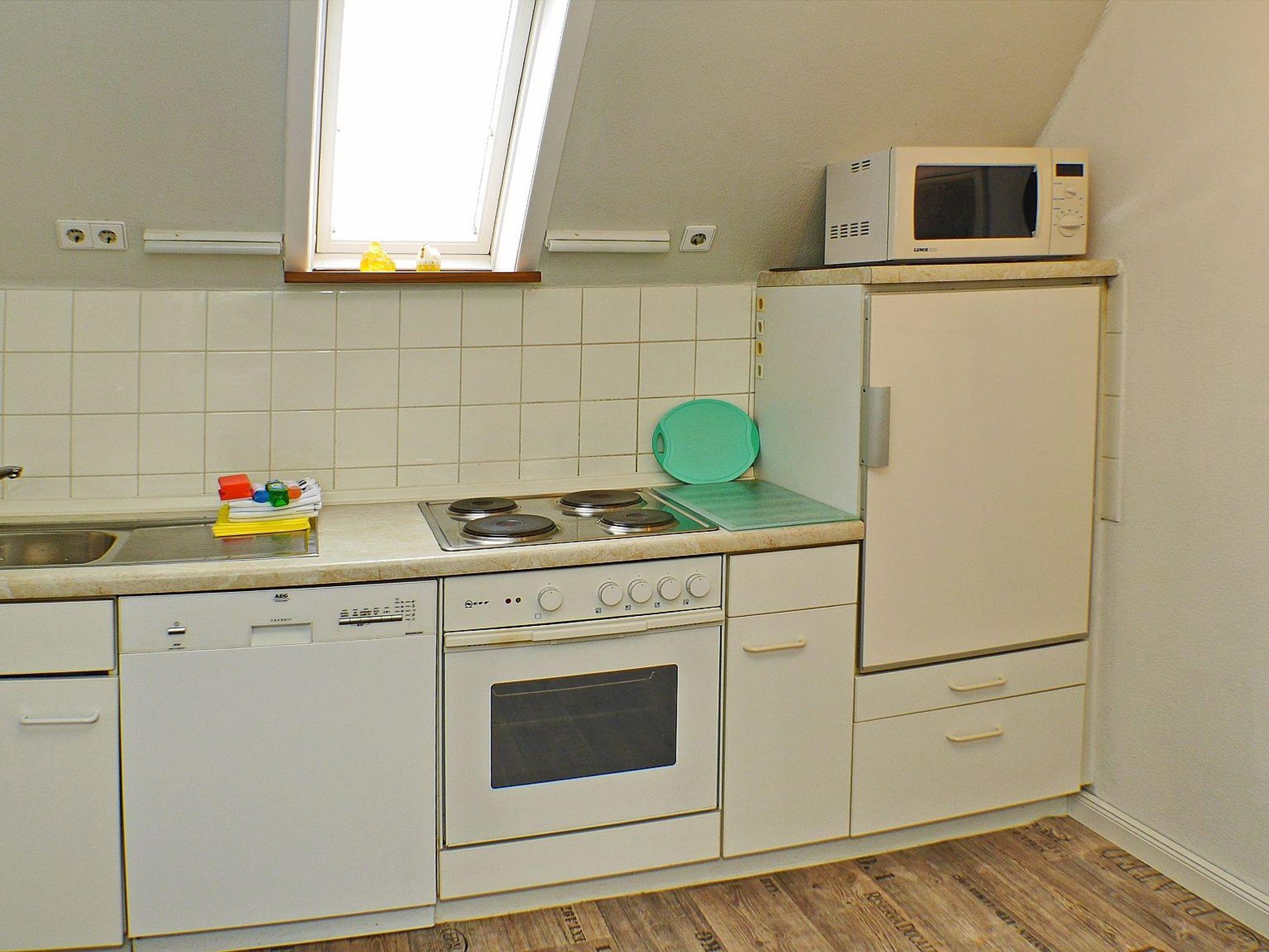 Die großzügige, separate Küche ist ausgestattet mit 4-Plattenkochfeld, Backofen, Mikrowelle, Geschirrspüler, Kühlschrank mit Gefriermöglichkeit, Kaffeemaschine, Wasserkocher, Toaster und Geschirr für den täglichen Bedarf ist selbstverständlich.