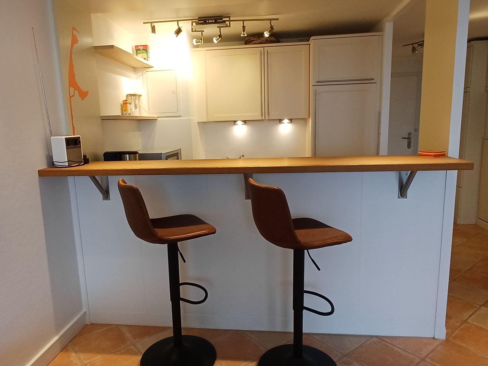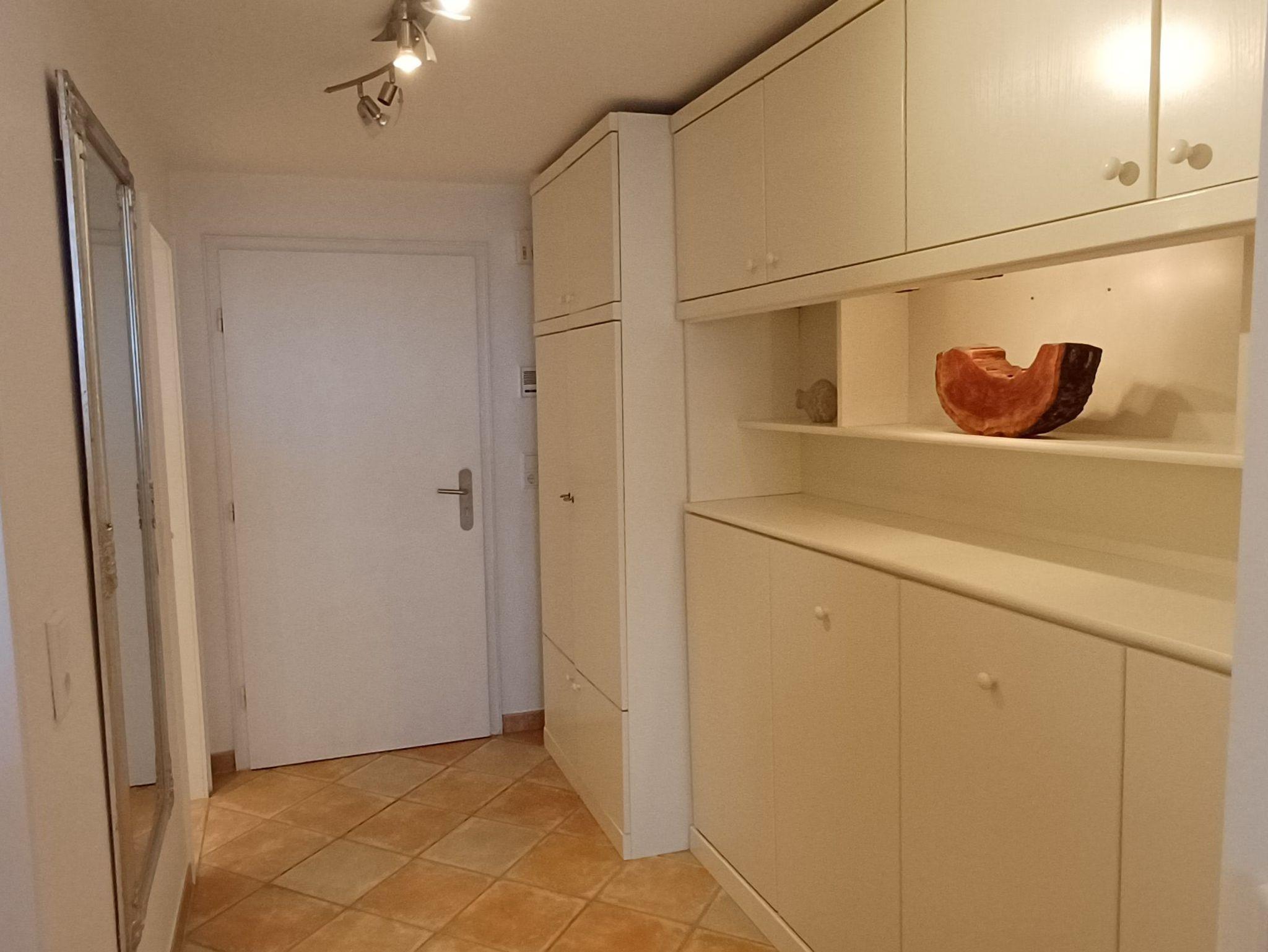 Ein kombinierter Wohn-Schlafraum mit Doppelschlafsofa, Essecke ist der Mittelpunkt dieser hell eingerichteten Wohnung mit Fliesenboden. Im Flurbereich steht ein weiteres Einzelschrankbett für 1 Person zur Verfügung.