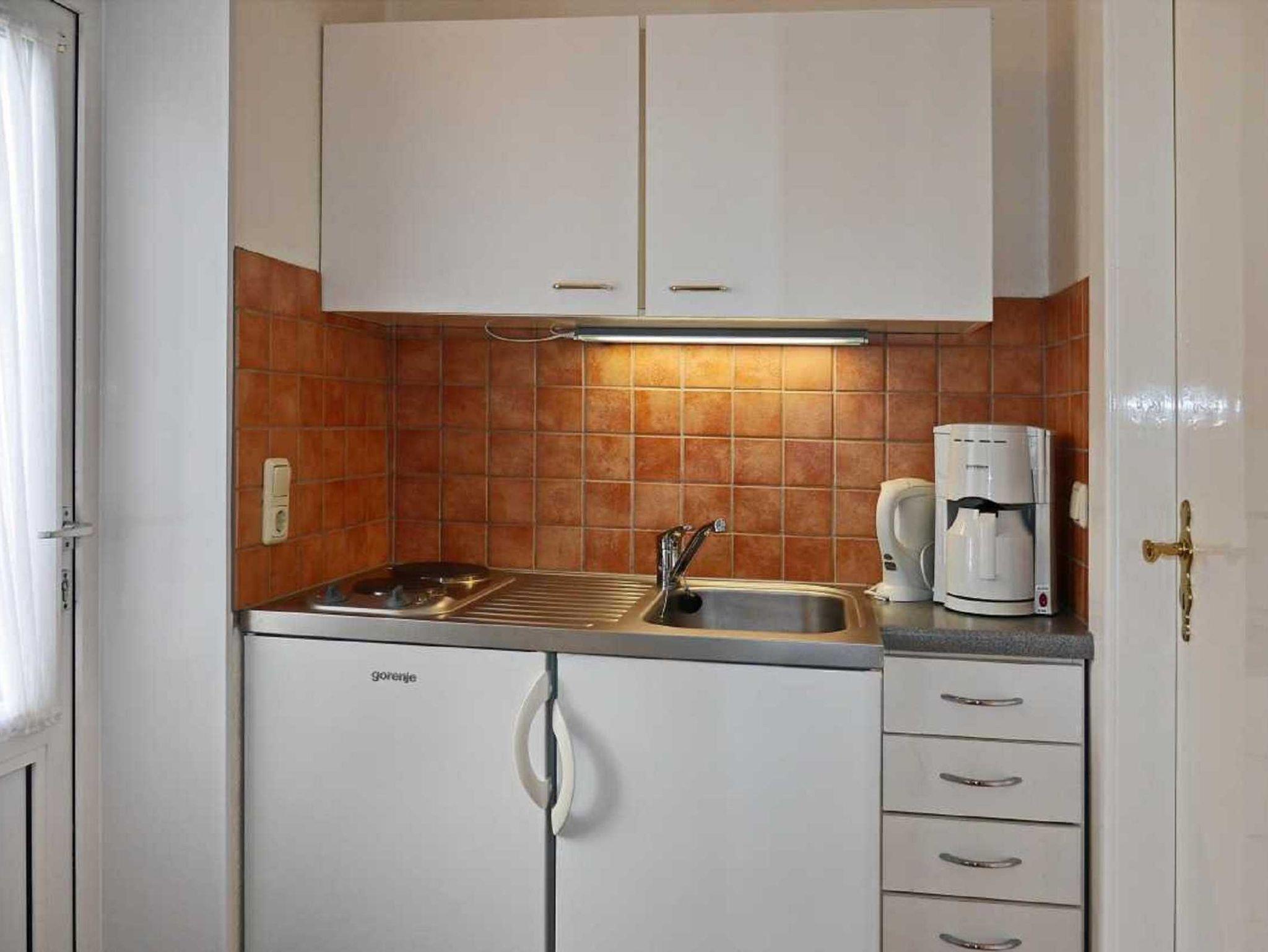 Die separate Pantryküchenzeile im Eingangsbereich ist ausgestattet mit 2-Plattenkochfeld, Kühlschrank mit Gefriermöglichkeit, Kaffeemaschine, Wasserkocher, Toaster und Geschirr für den täglichen Gebrauch.